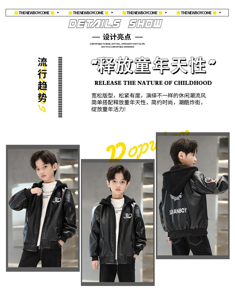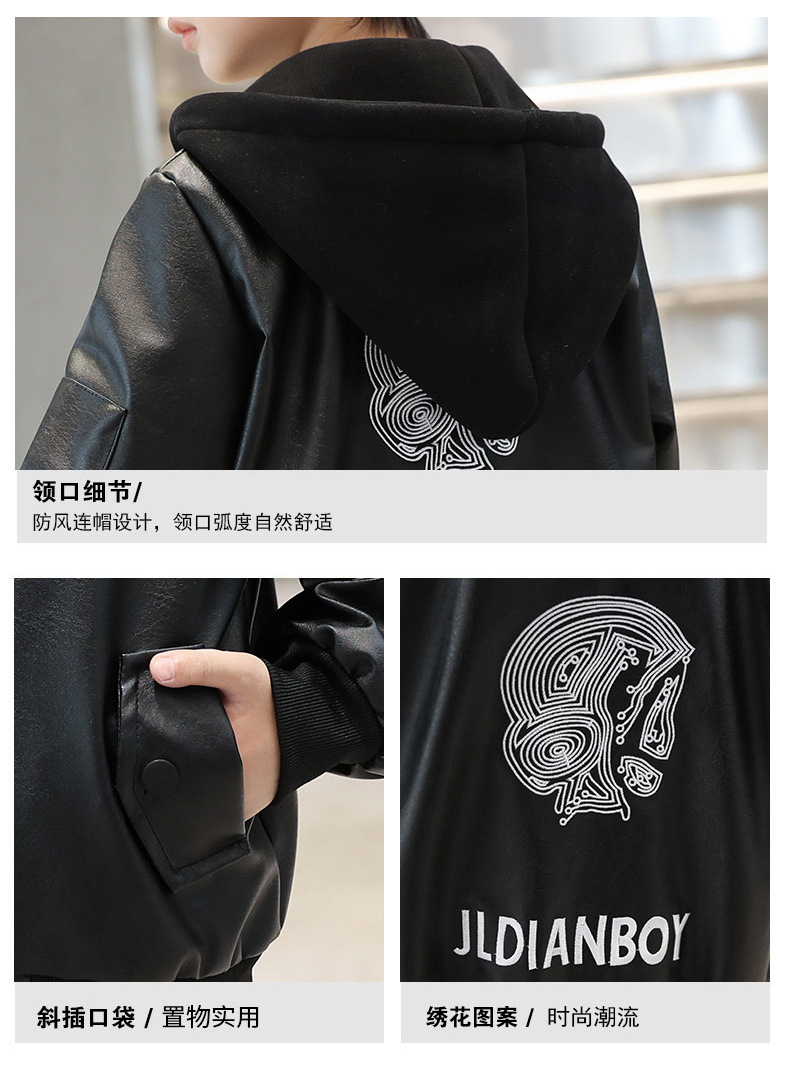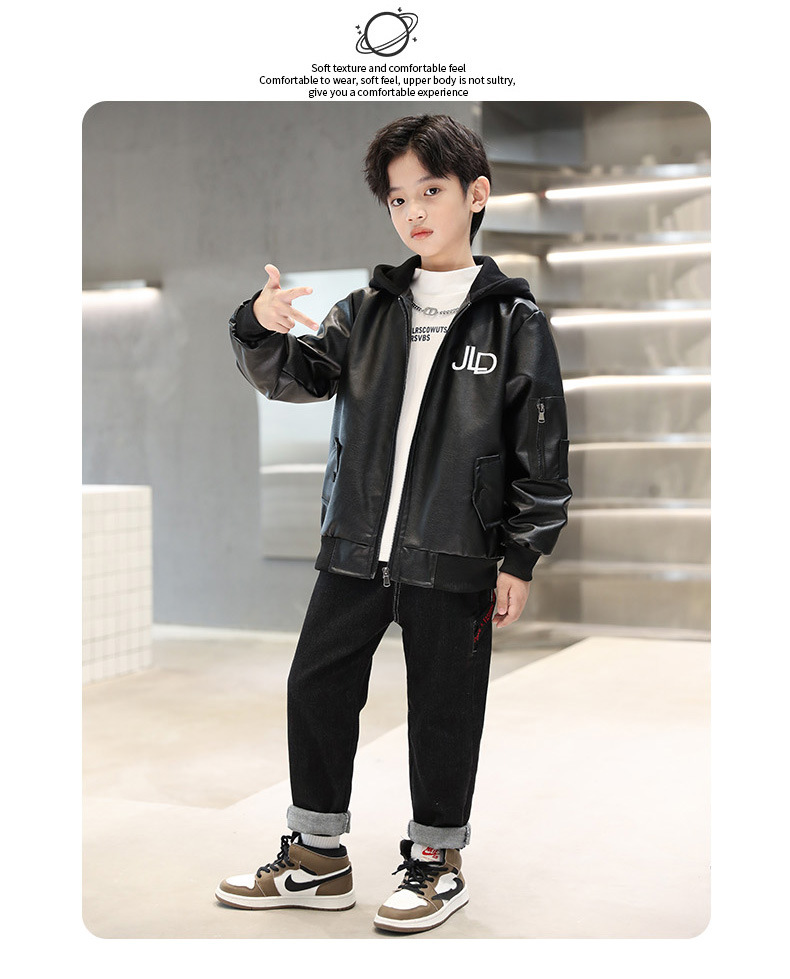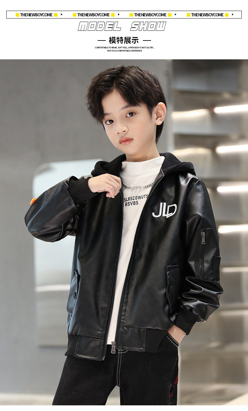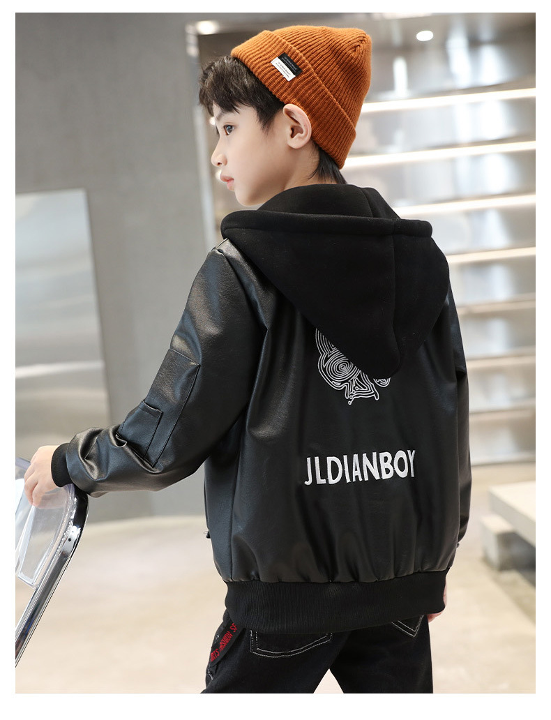 소년 가죽 자켓 2025 새로운 중대형 어린이 봄과 가을 자전거 의류 소년 잘 생긴 가죽 자켓 후드 코트 트렌디스토어 가기