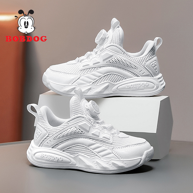소년 소녀를위한 바부 콩 통기성 메쉬 신발 봄과 가을 운동화 스위블 버클 부드러운 밑바닥 미끄럼 방지 흰색 신발