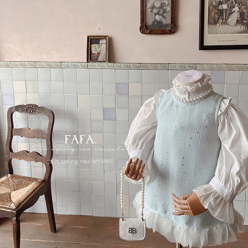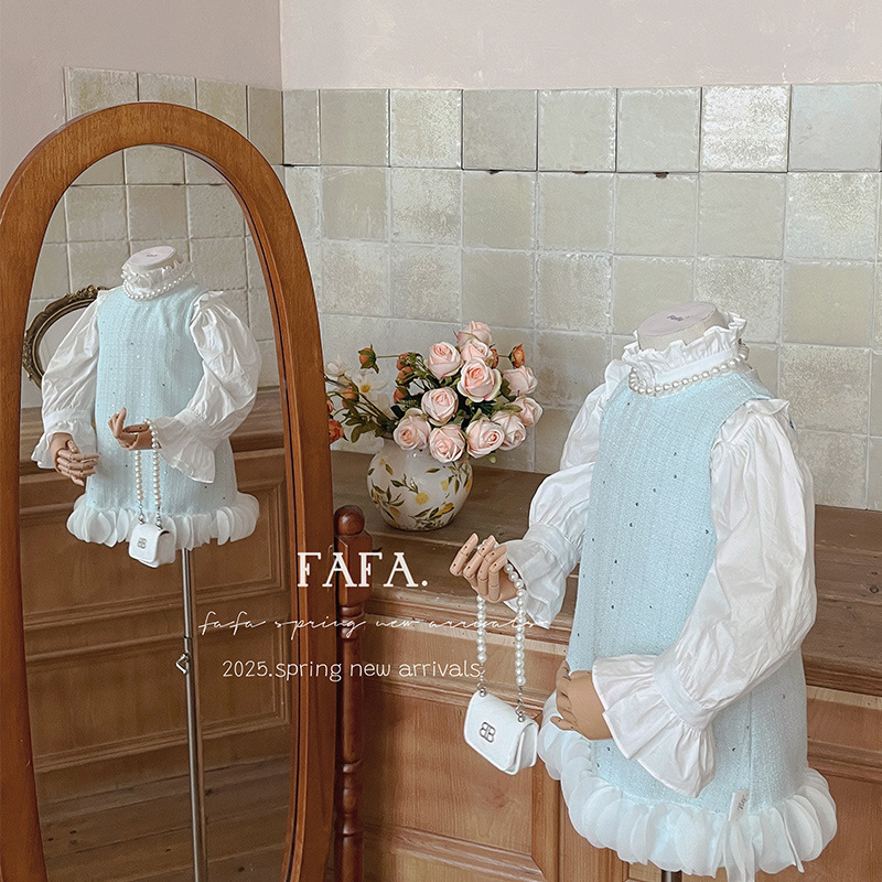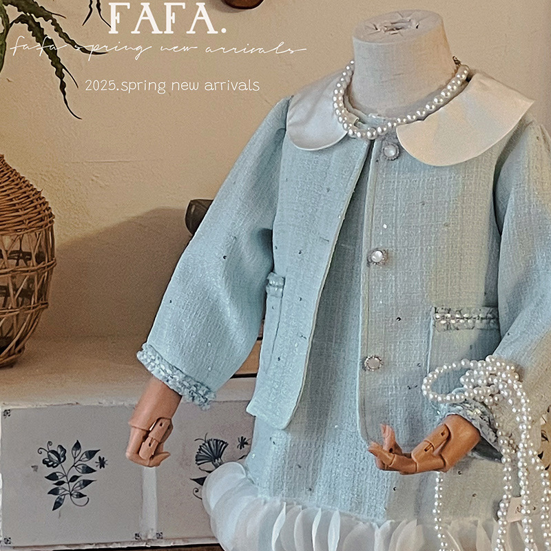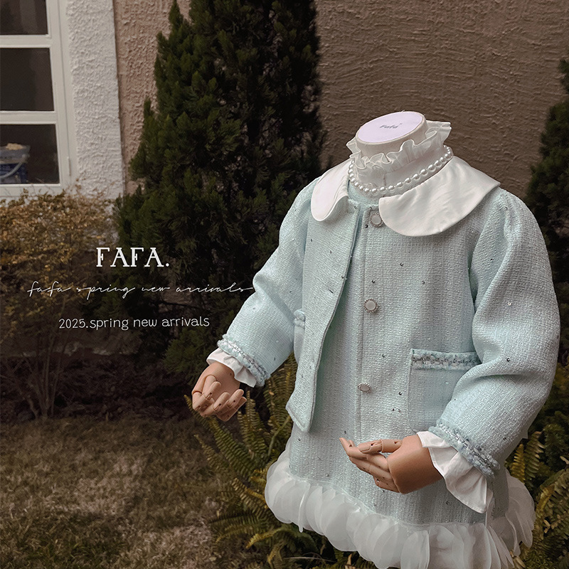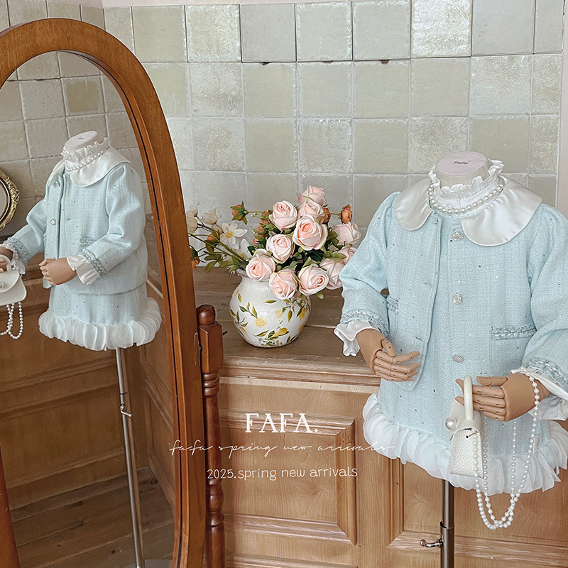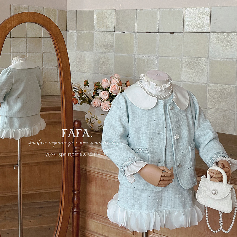 CT259083 소녀 세트 2025 봄 새 궁전 스타일 샤넬 스타일 코트 원피스 어린이 세트스토어 가기