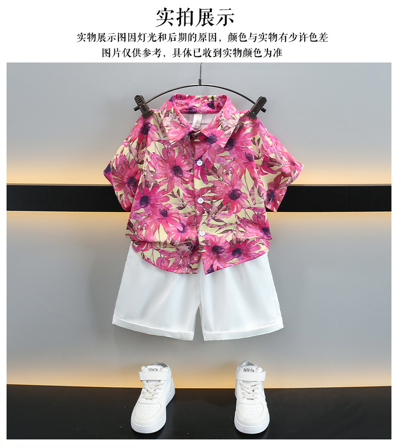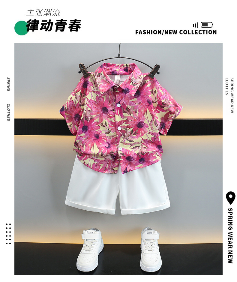 남학생 반팔 세트 2025 년 새 여름 어린이 인터넷 연예인 프라이 스트리트 쿨 유행 서양식 셔츠 옷 트렌디