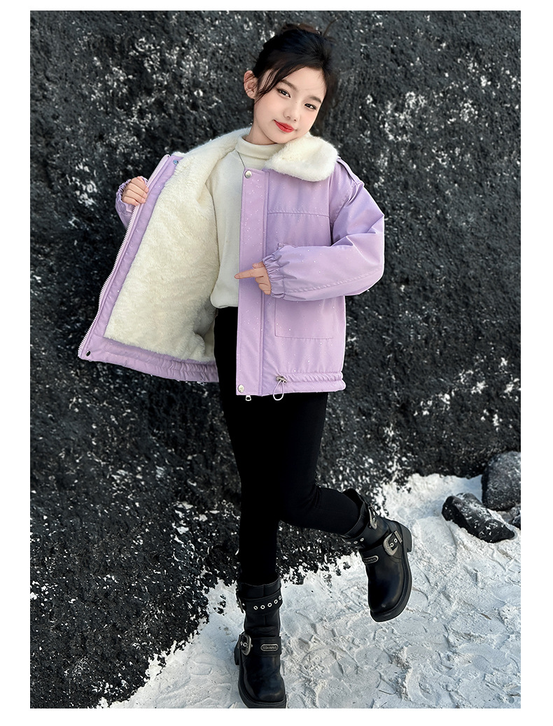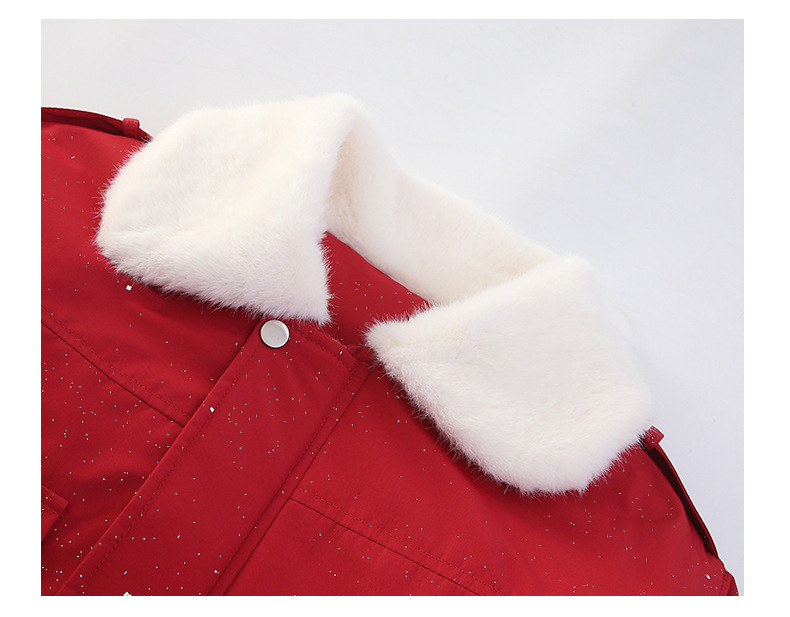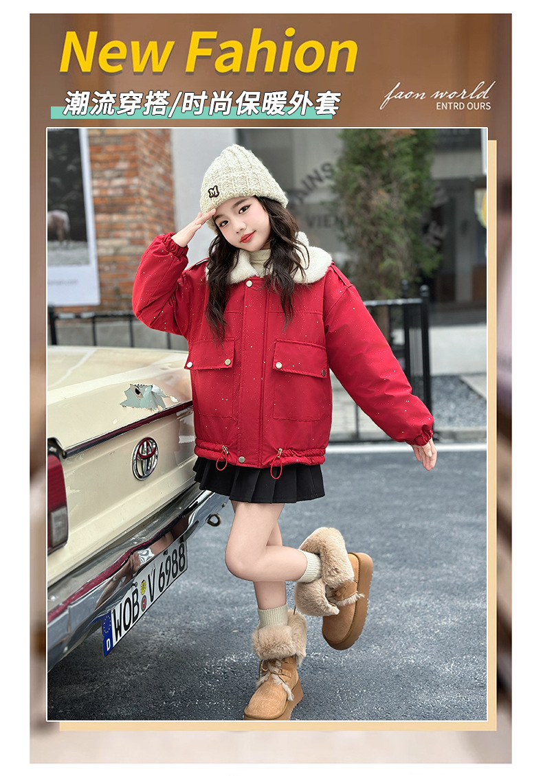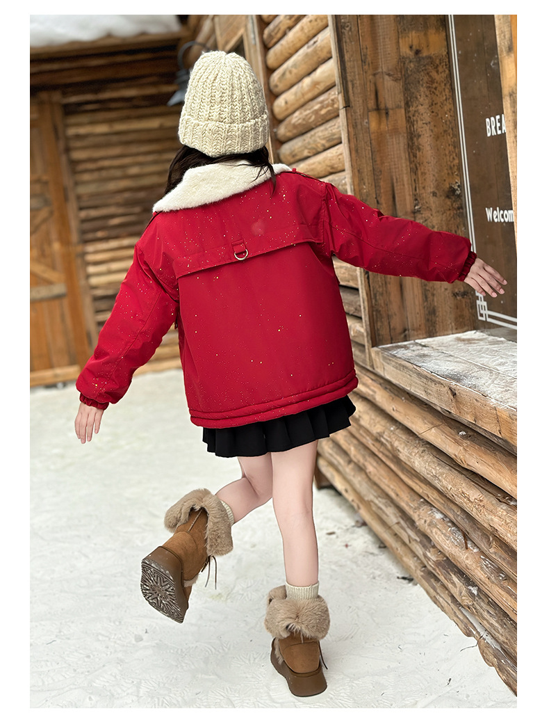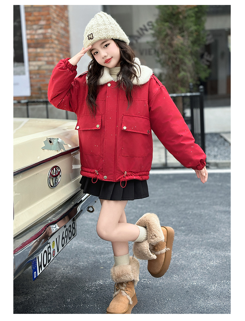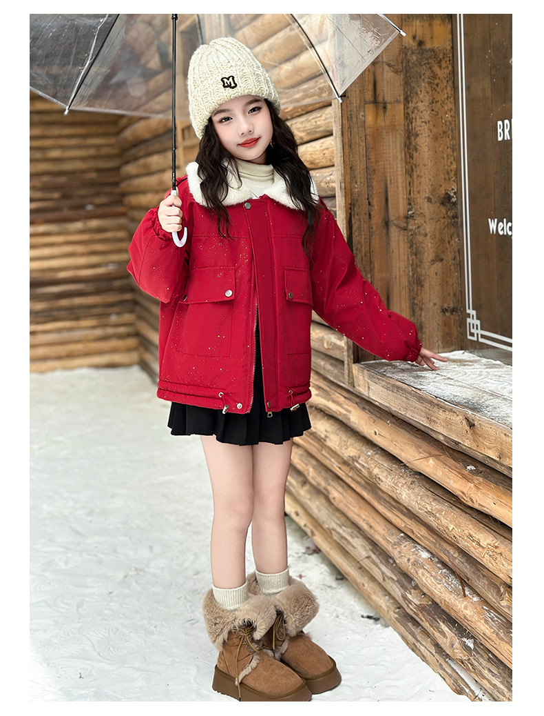 소녀 윈터 코트 기모 2025 년 대형 신형 서양식 아동면 코트, 안코 라 레드 코튼 코트 극복