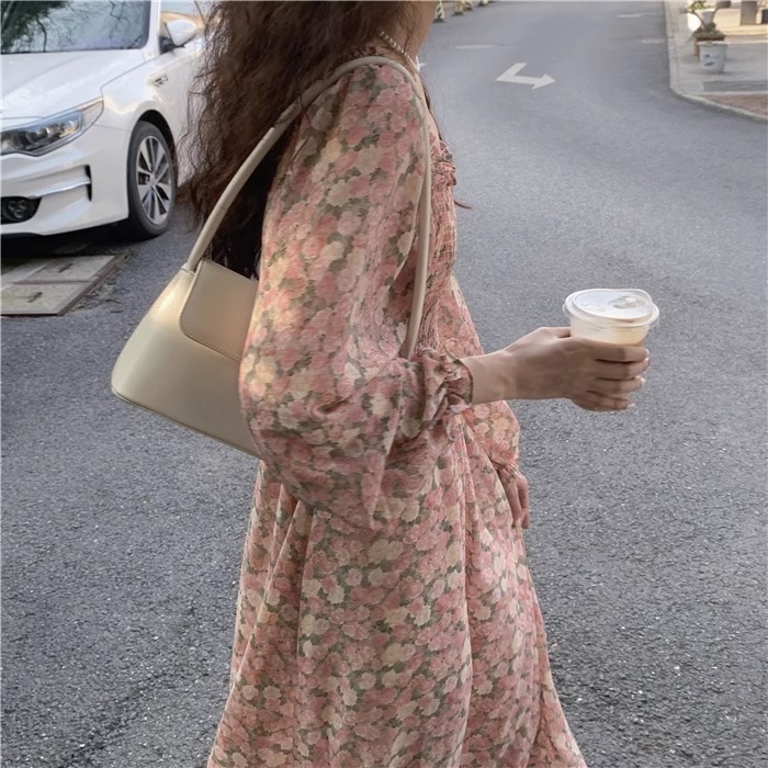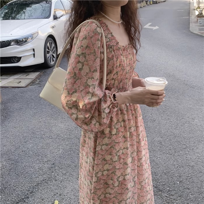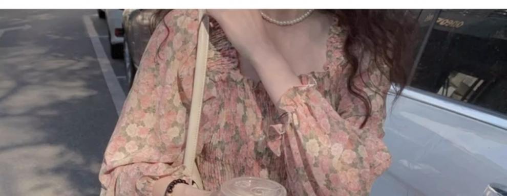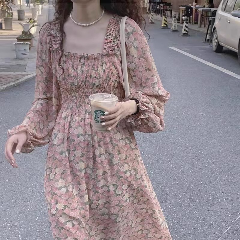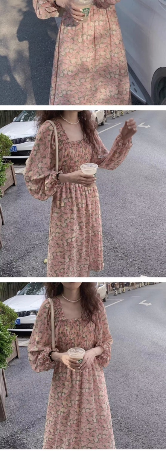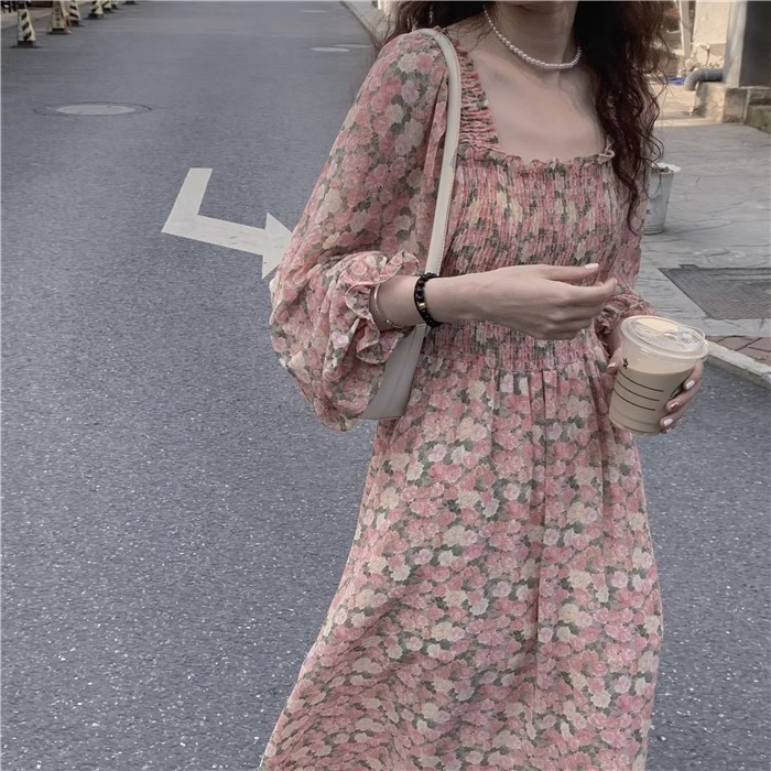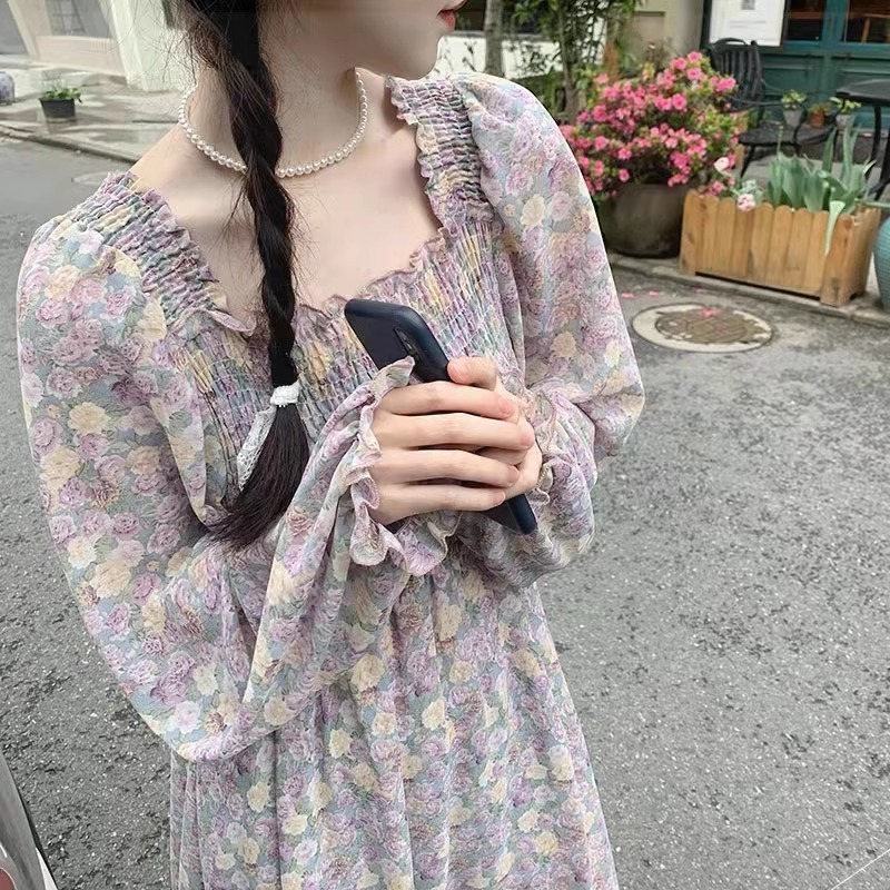 여름 프랑스 레트로 쉬폰 원피스 여성의 봄과 가을 2024 새로운 슬림 우아한 꽃 긴 원피스스토어 가기