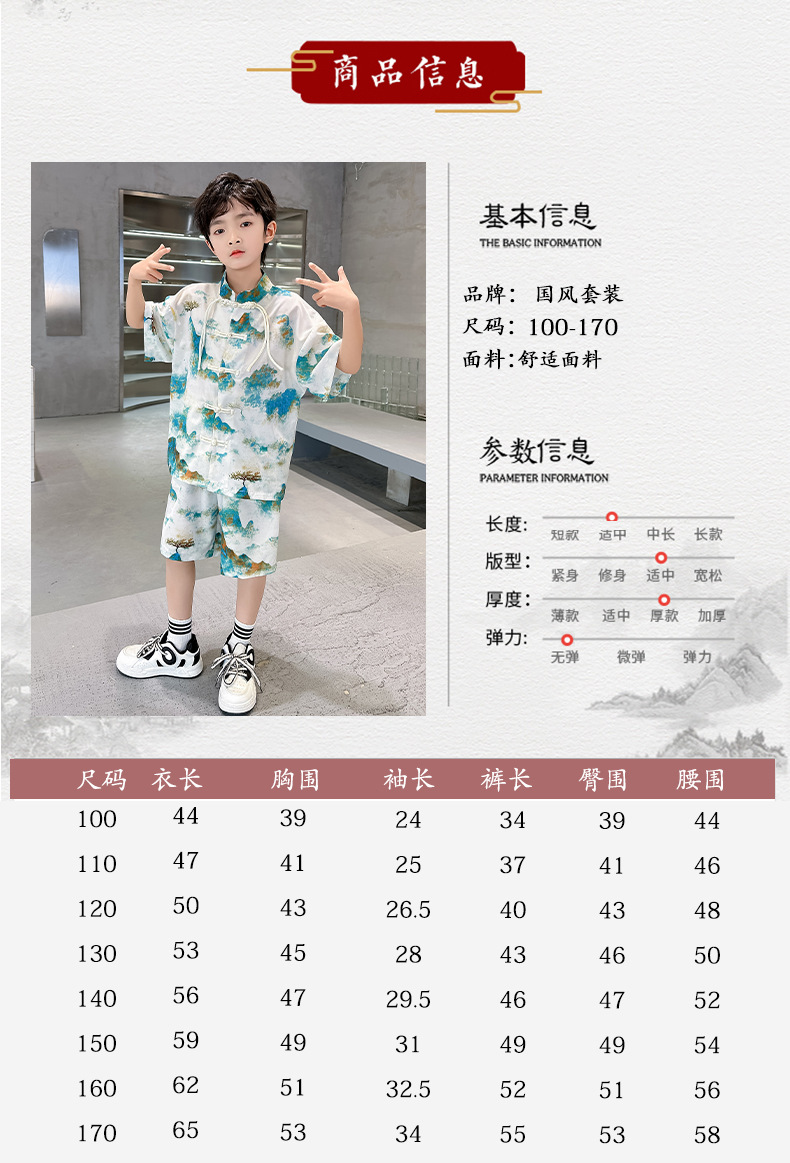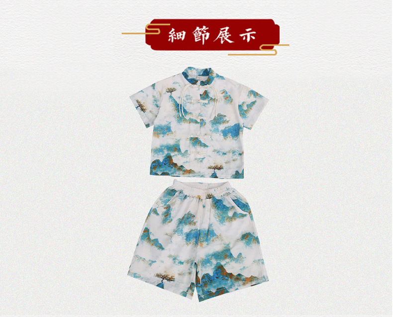 중국 스타일 소년 중국 2025 한푸 반팔 세트 탕 세트 소년을위한 어린이 새 여름 투피스 유행 세트스토어 가기