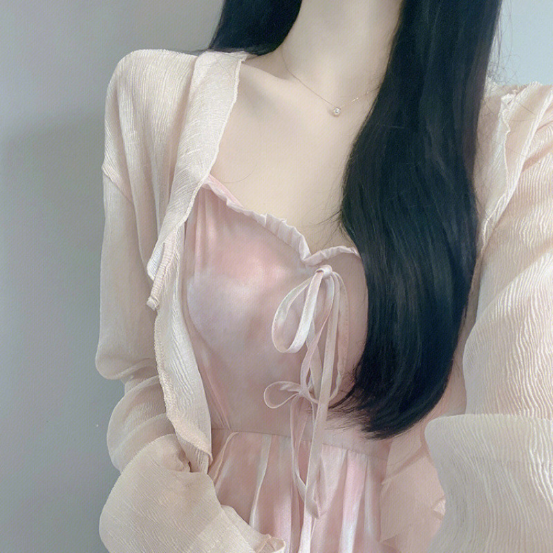 슈퍼 요정 원피스 이른 봄 새 2025 여자 얇은 재킷 달콤한 허리 슬링 긴 원피스 세트스토어 가기