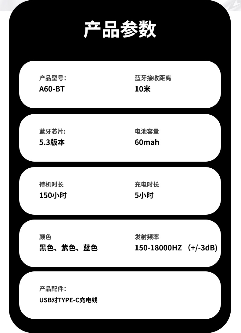 새로운 개인 모델 5.3 사운드 전도 블루투스 헤드셋 A60-BT 매달린 귀없는 야외 스포츠 승마