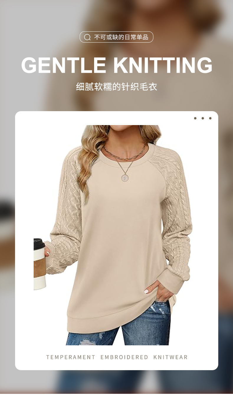 아마존 국경 간 여성 스포츠 스웨터 Dalang 스웨터 공장 라운드 넥 케이블 니트 긴팔 스웨터 맞춤형스토어 가기
