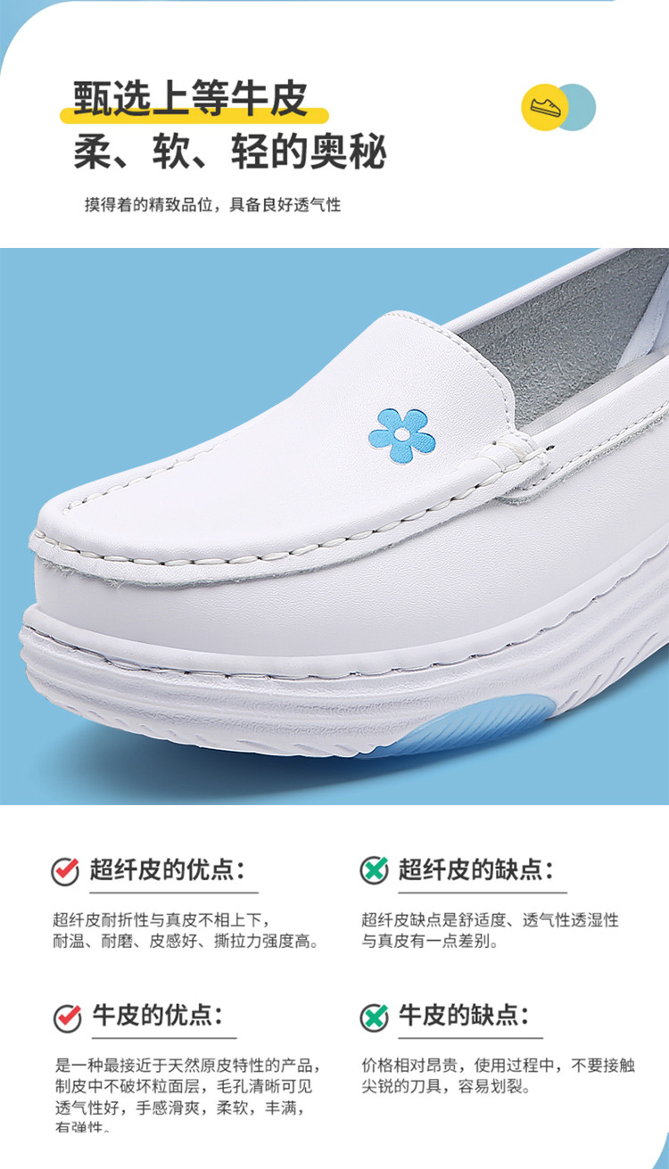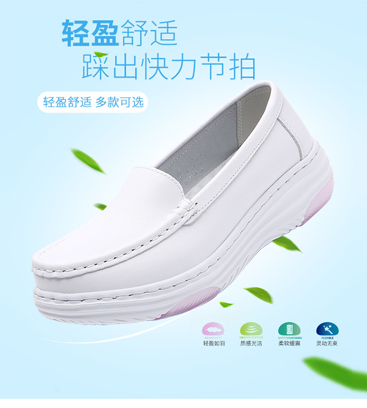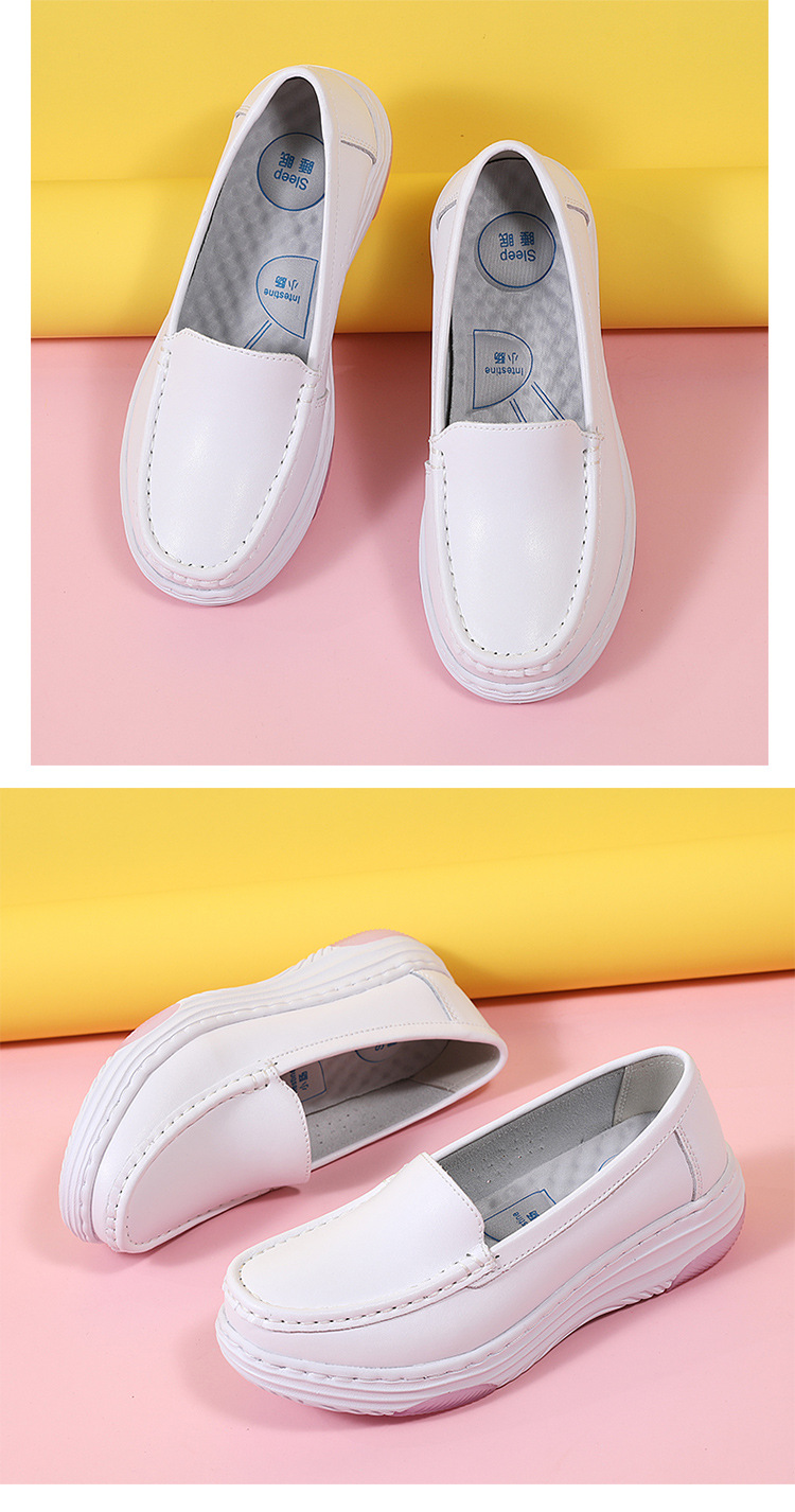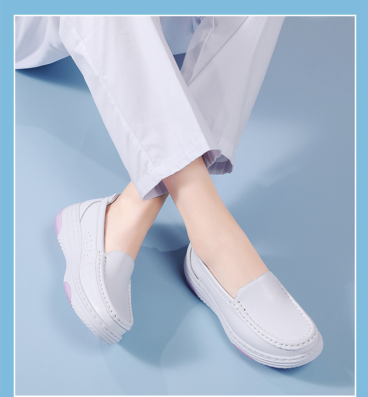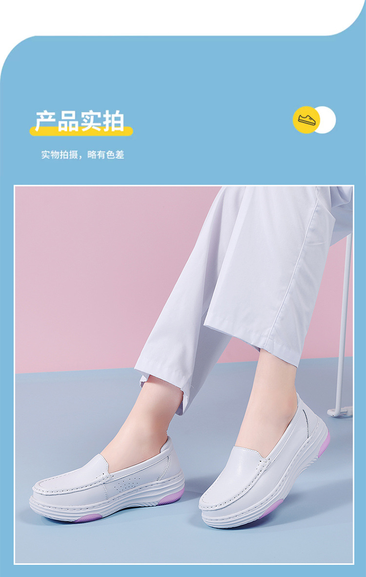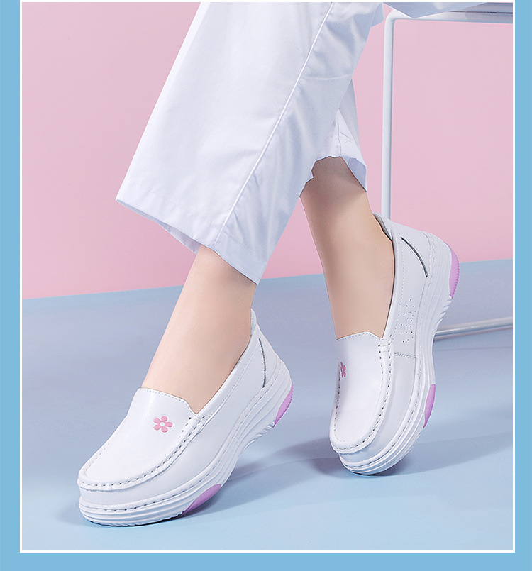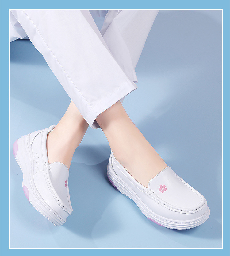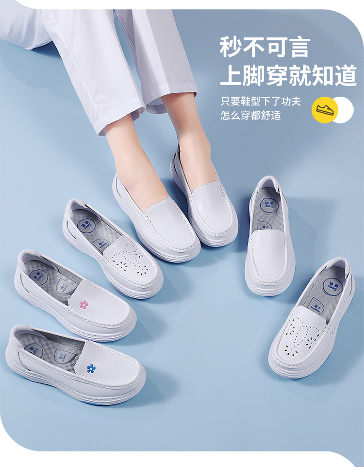 2024 간호사 신발 여성의 부드러운 통기성 편안한 비 냄새 발 빈 미끄럼 플랫 가죽 통기성 의료용 신발스토어 가기