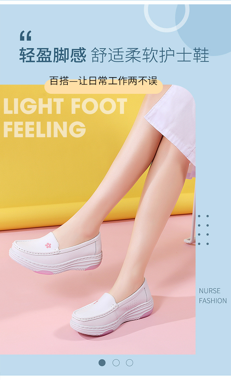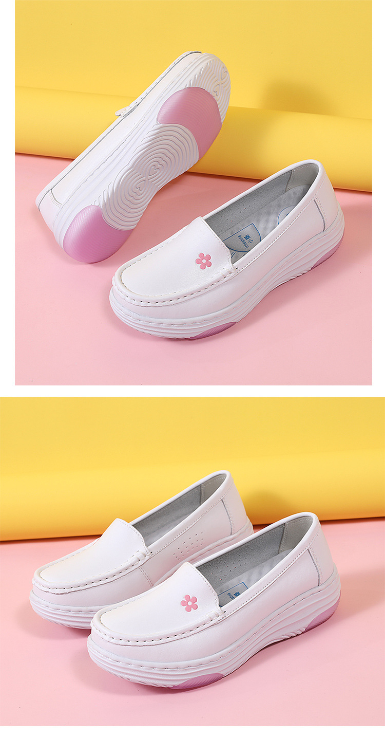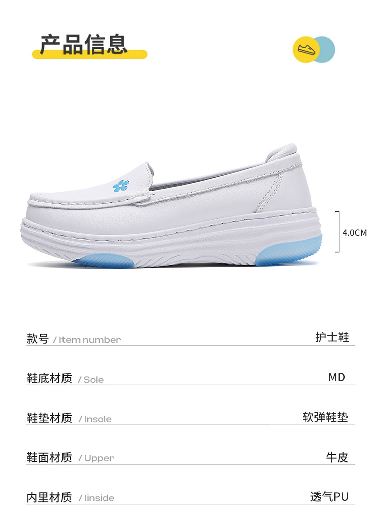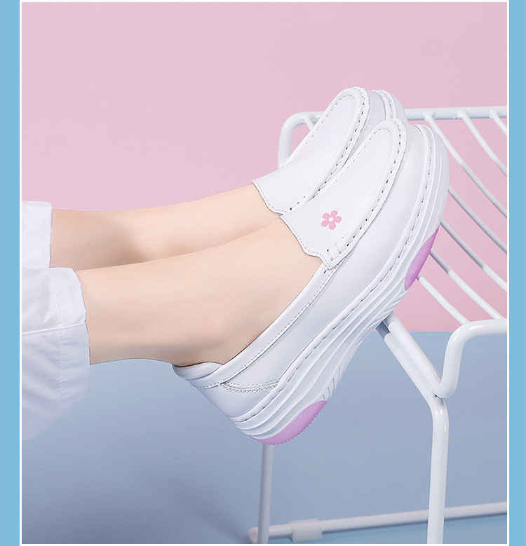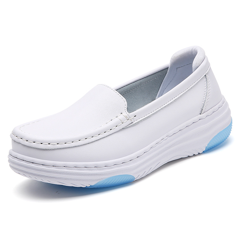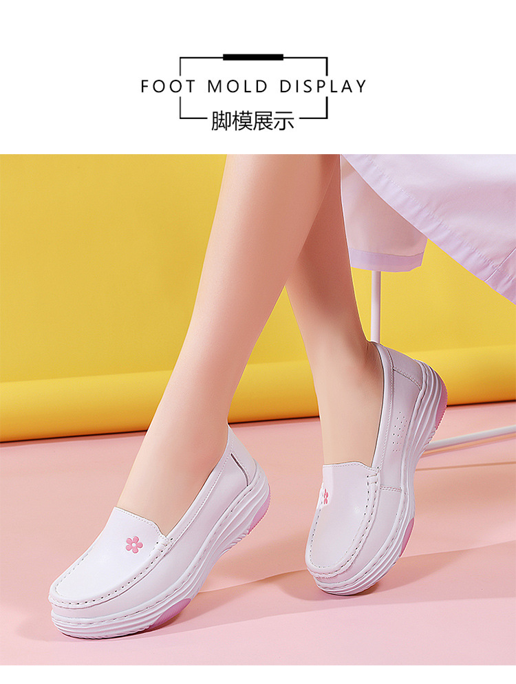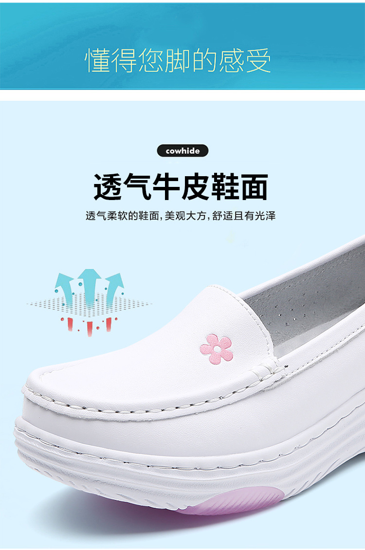 2024 간호사 신발 여성의 부드러운 통기성 편안한 비 냄새 발 빈 미끄럼 플랫 가죽 통기성 의료용 신발스토어 가기