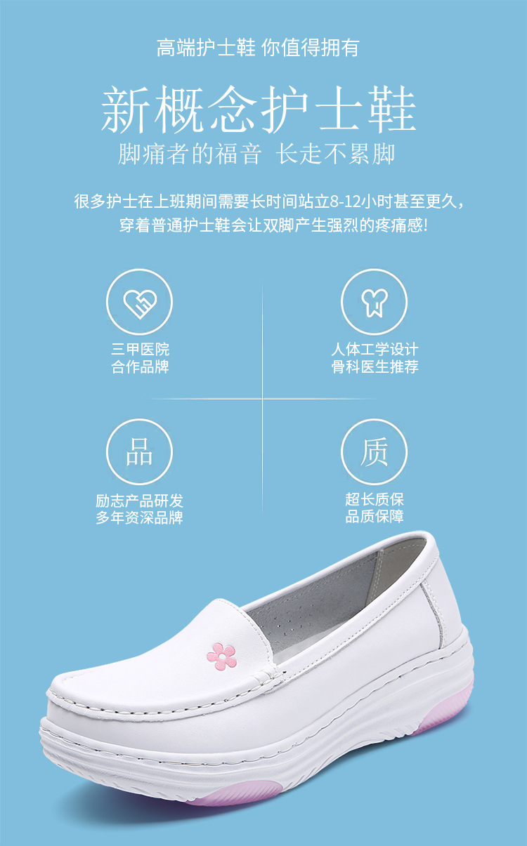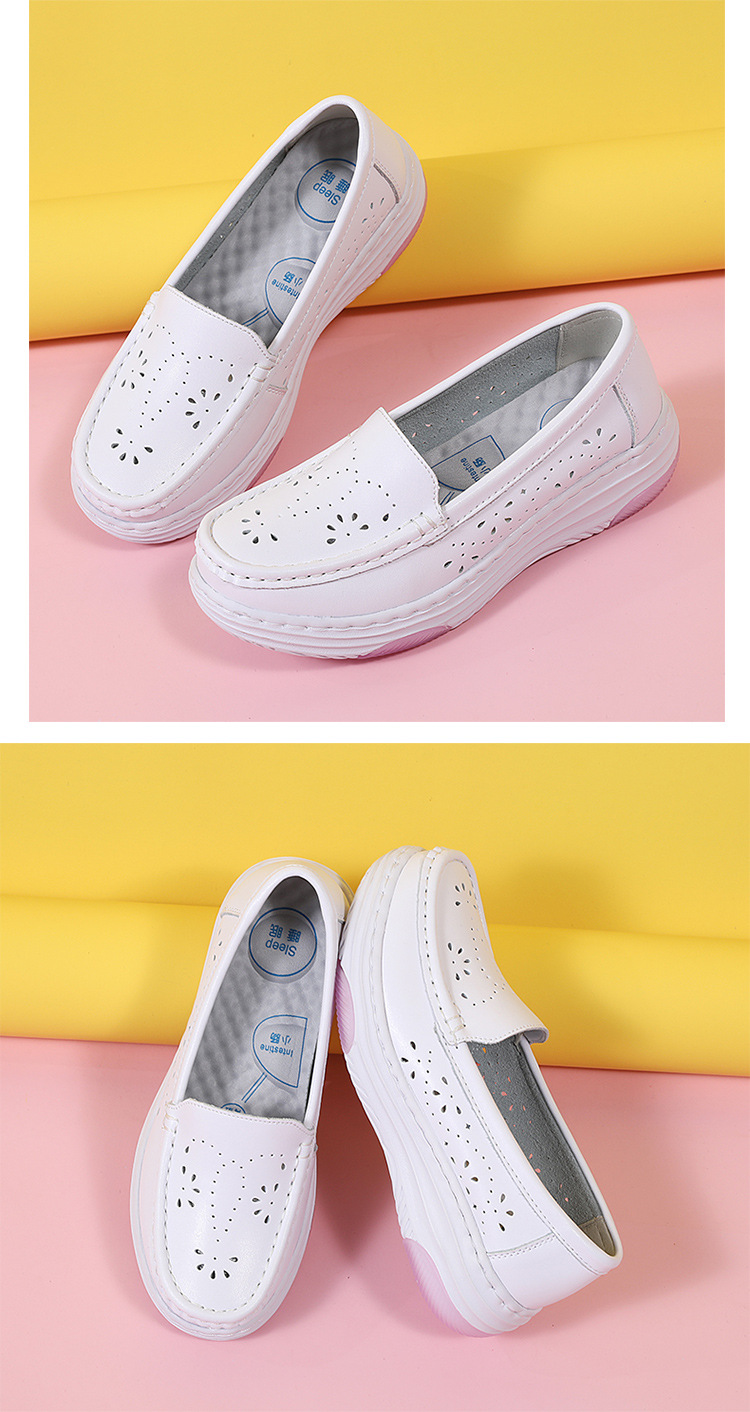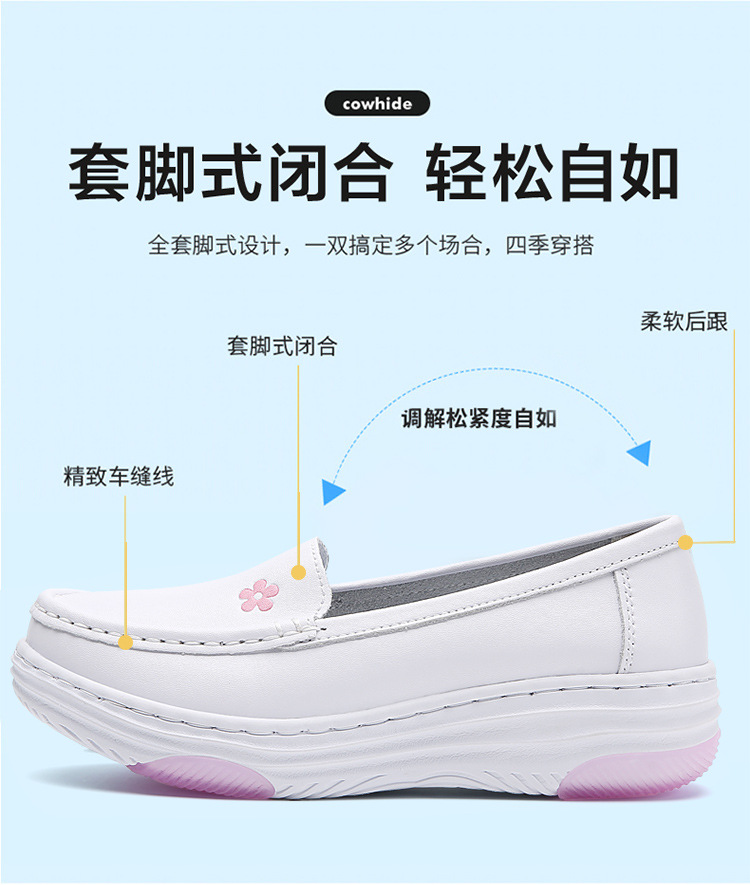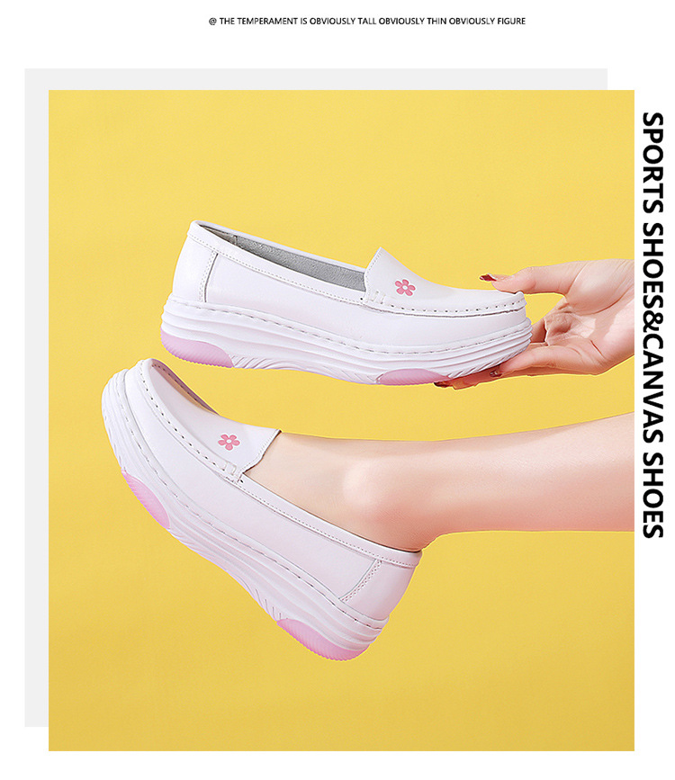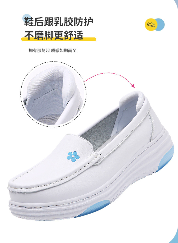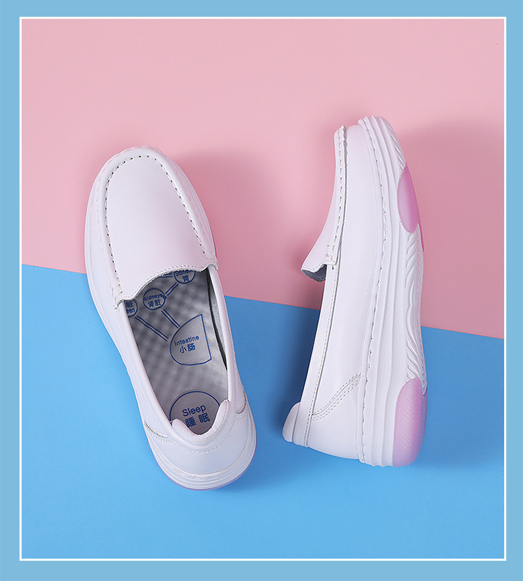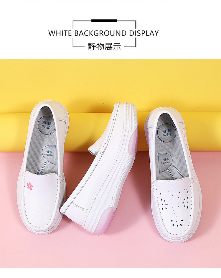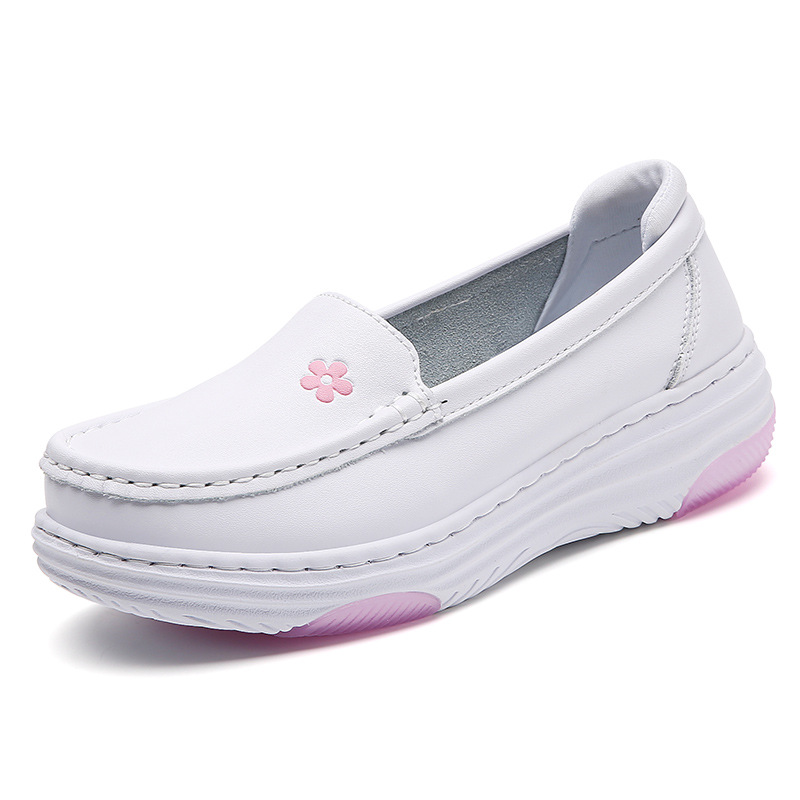 2024 간호사 신발 여성의 부드러운 통기성 편안한 비 냄새 발 빈 미끄럼 플랫 가죽 통기성 의료용 신발스토어 가기