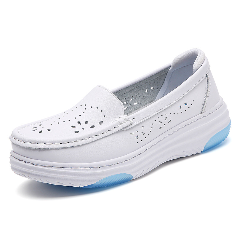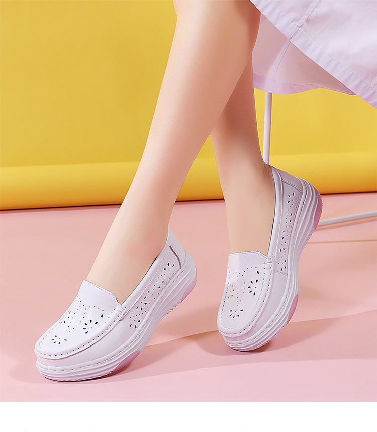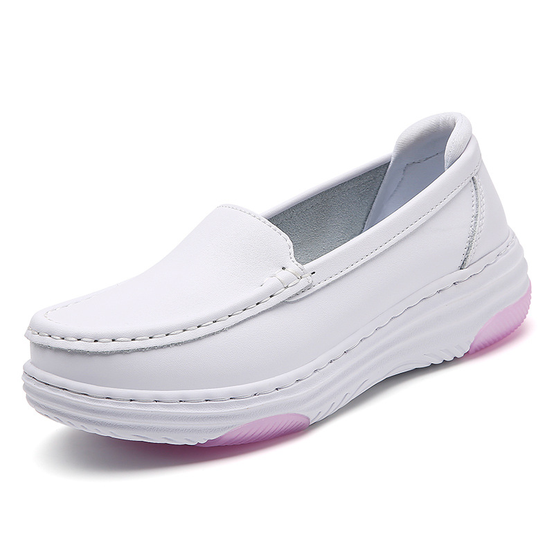 2024 간호사 신발 여성의 부드러운 통기성 편안한 비 냄새 발 빈 미끄럼 플랫 가죽 통기성 의료용 신발