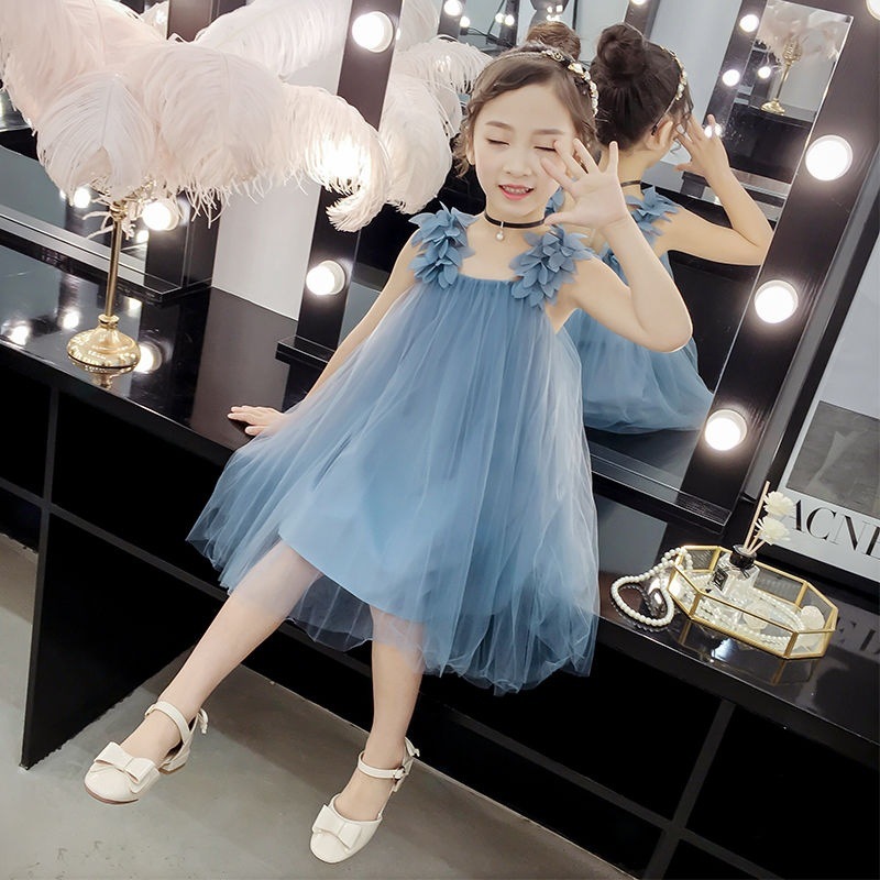 소녀 원피스 여름 2025 새로운 한국 스타일 어린이 아기 세련된 치마 어린 소녀의 푹신한 원사 공주 치마