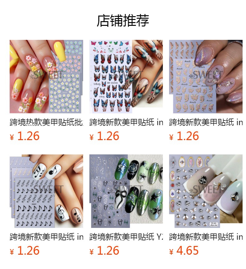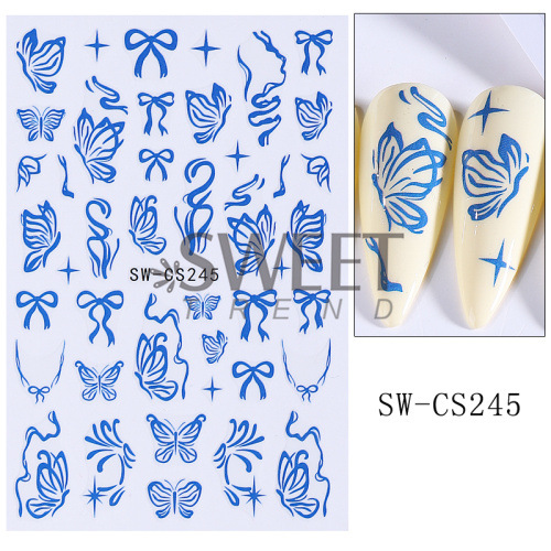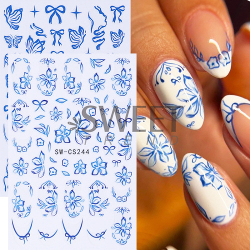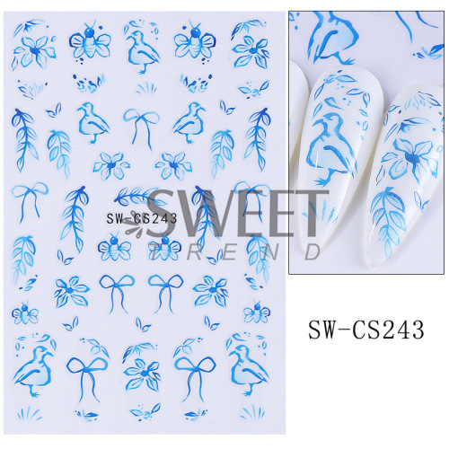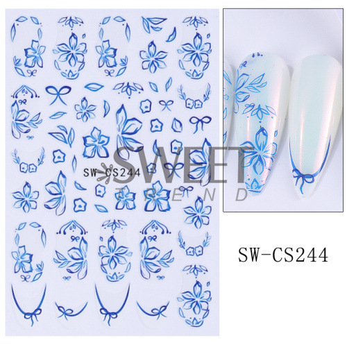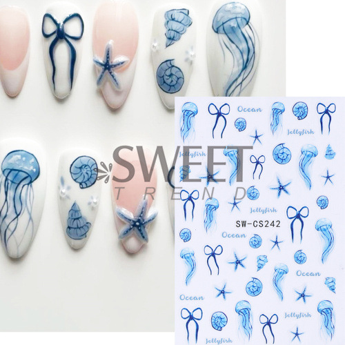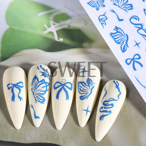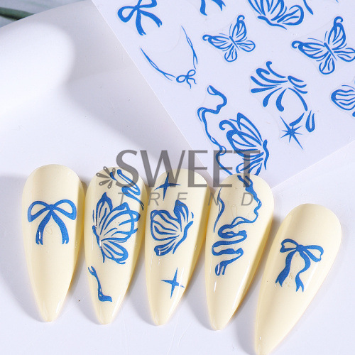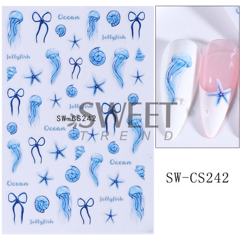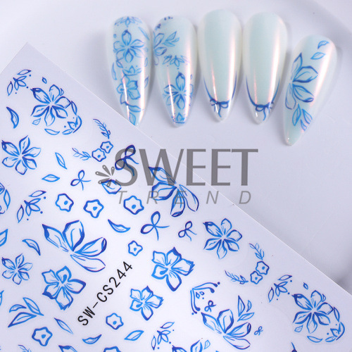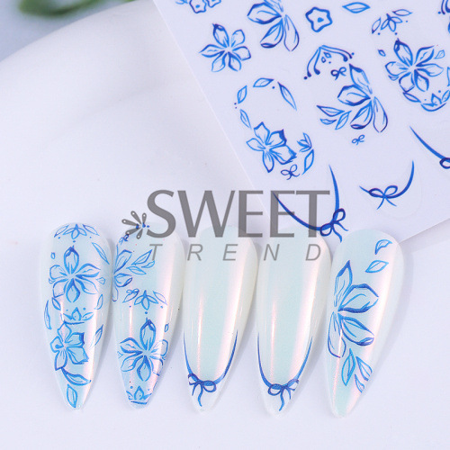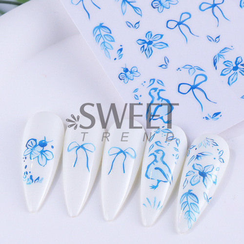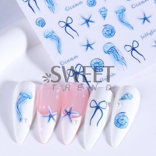 도매 간단한 푸른 활 꽃 해양 생물 네일 스티커 국경 새로운 접착 네일 스티커스토어 가기