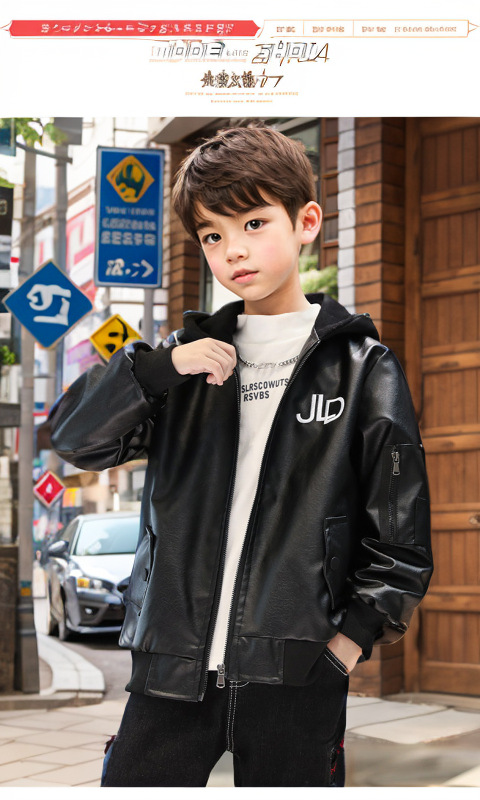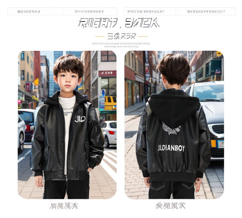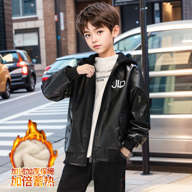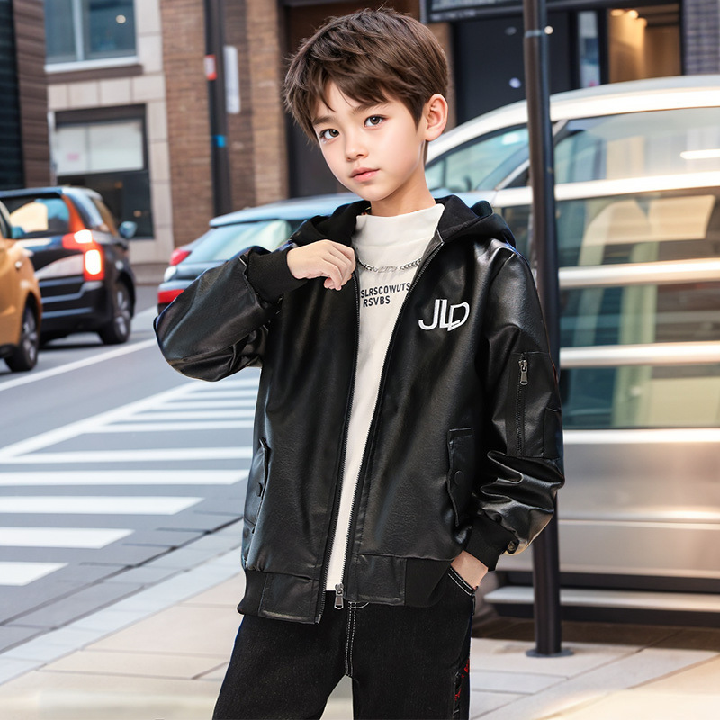 소년 가죽 자켓 2025 새로운 중대형 어린이 봄과 가을 자전거 의류 소년 잘 생긴 가죽 자켓 후드 코트 트렌디