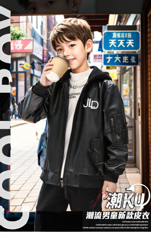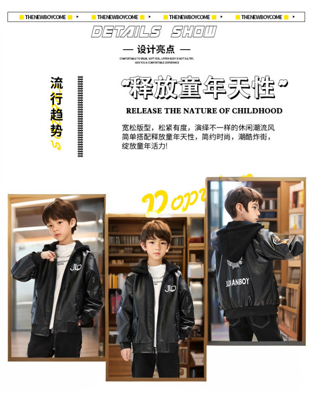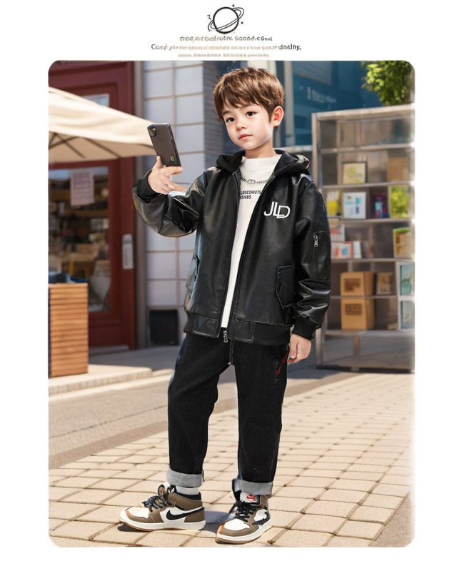소년 가죽 자켓 2025 새로운 중대형 어린이 봄과 가을 자전거 의류 소년 잘 생긴 가죽 자켓 후드 코트 트렌디스토어 가기