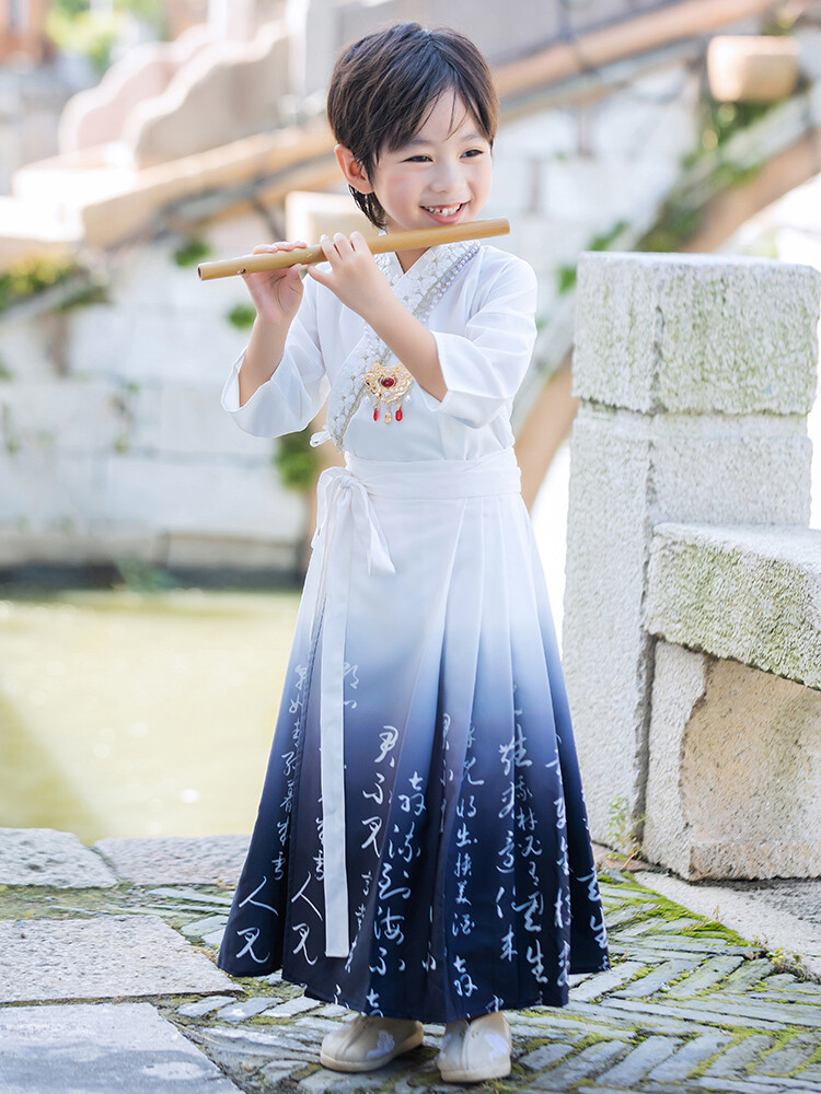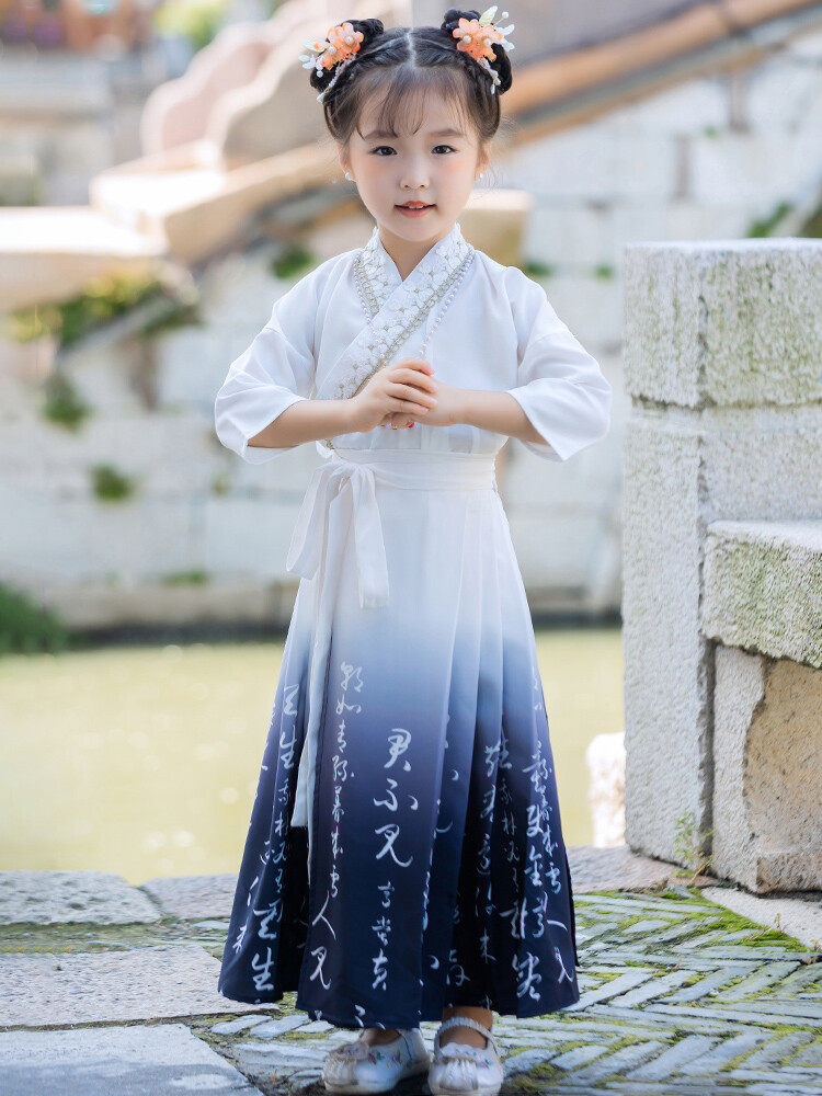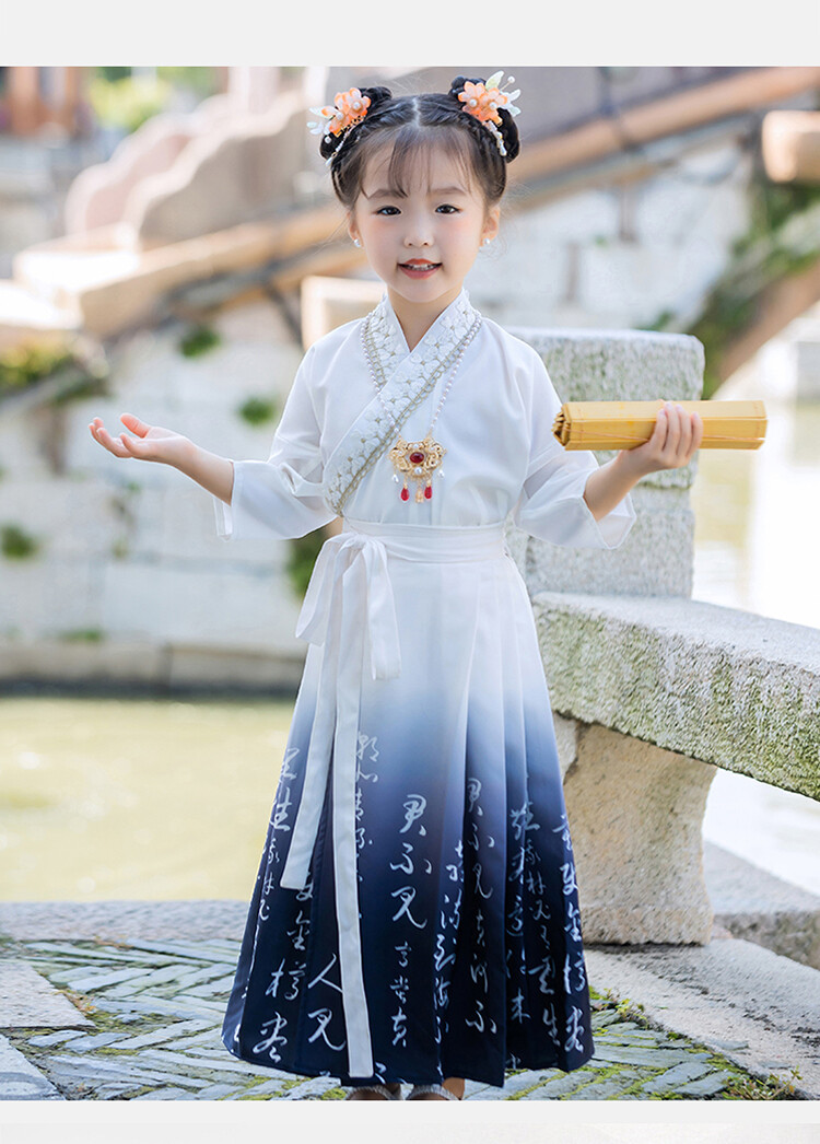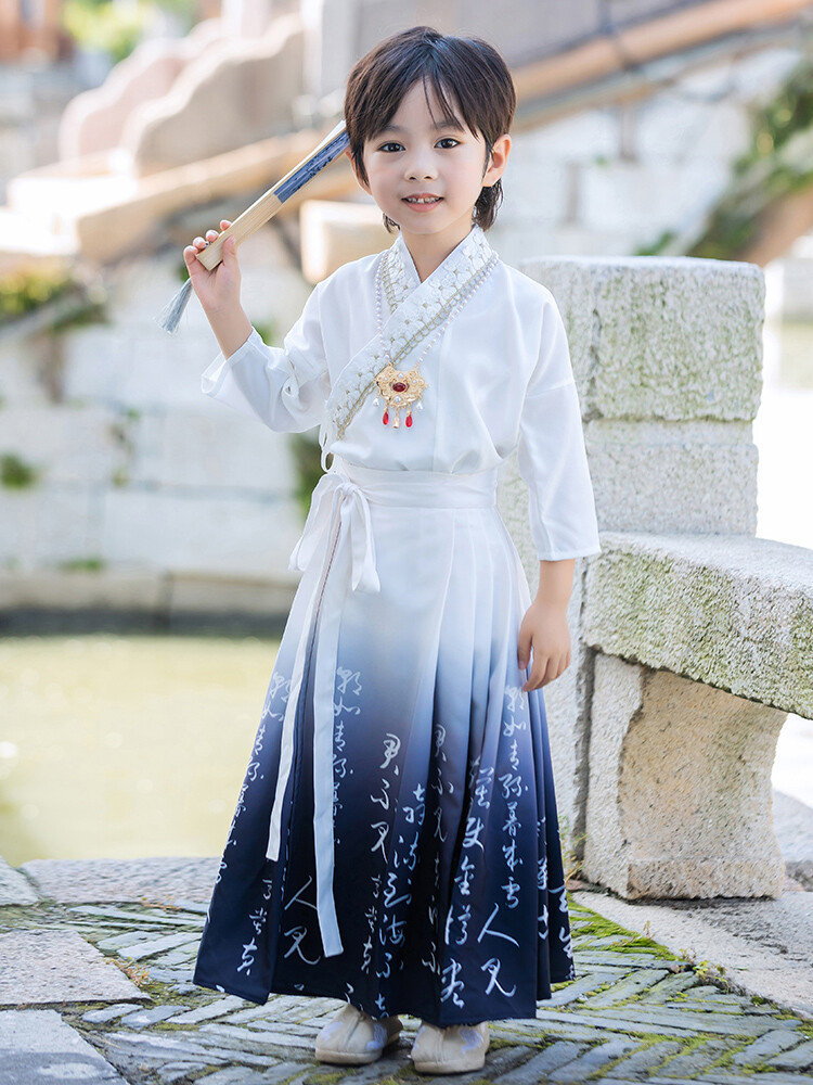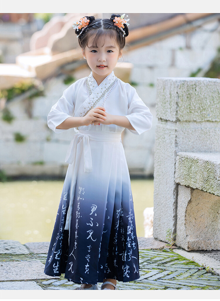 소년 소녀를위한 말 얼굴 치마 2025 세트 새로운 국가 스타일 어린이 한푸 봄과 가을 여름 천자 고대 세트 공연 옷