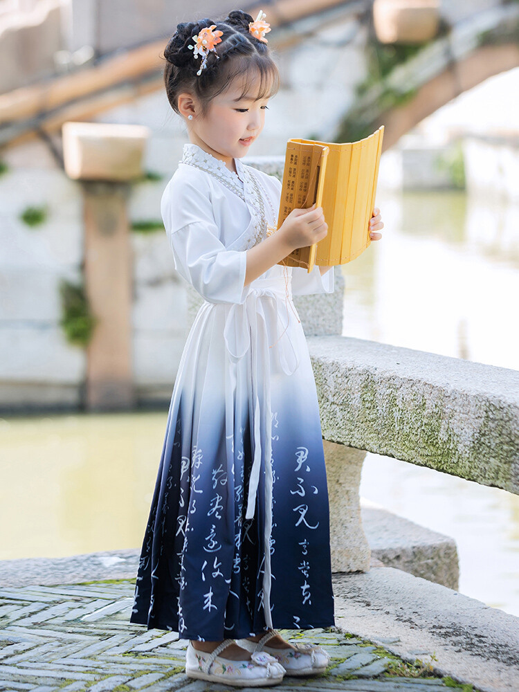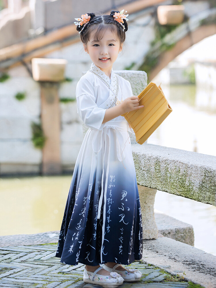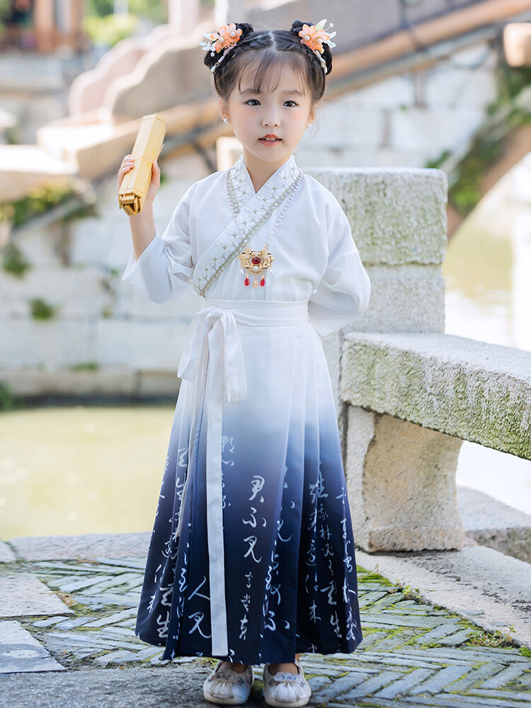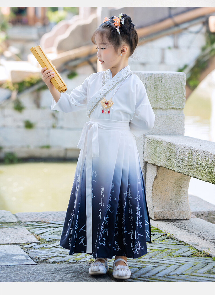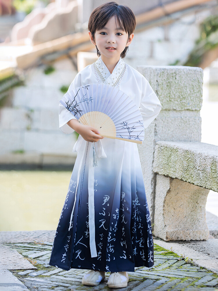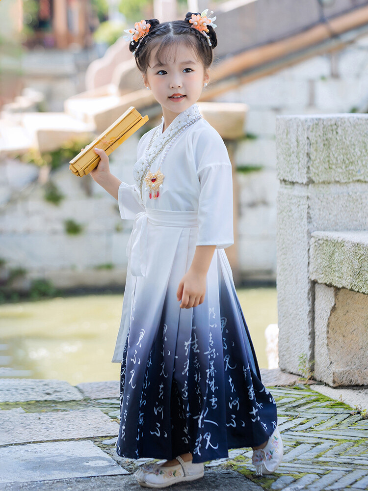 소년 소녀를위한 말 얼굴 치마 2025 세트 새로운 국가 스타일 어린이 한푸 봄과 가을 여름 천자 고대 세트 공연 옷