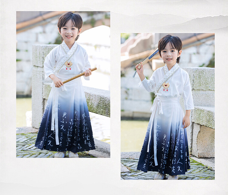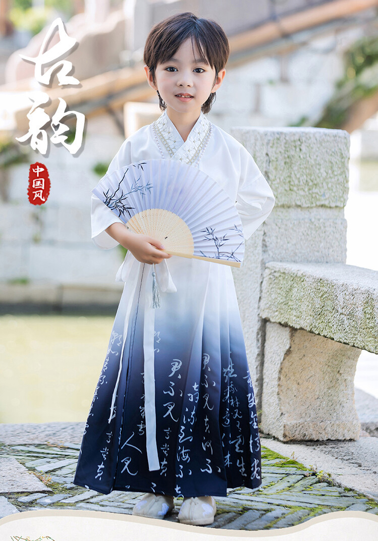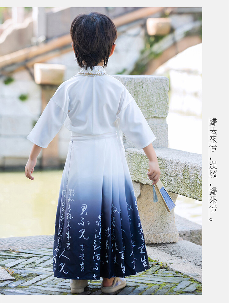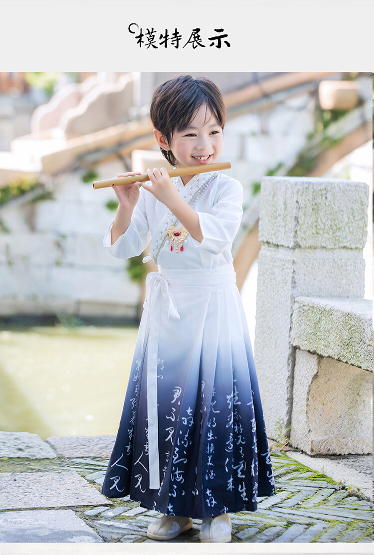 소년 소녀를위한 말 얼굴 치마 2025 세트 새로운 국가 스타일 어린이 한푸 봄과 가을 여름 천자 고대 세트 공연 옷스토어 가기