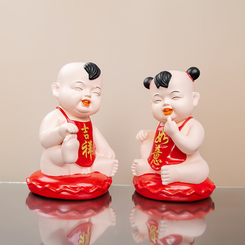 중국 스타일 인형 웨딩 선물 황금 소년 옥 소녀 아기 소년 빛나는 푸와 홈 중국 스타일 축복 수지 장식품스토어 가기