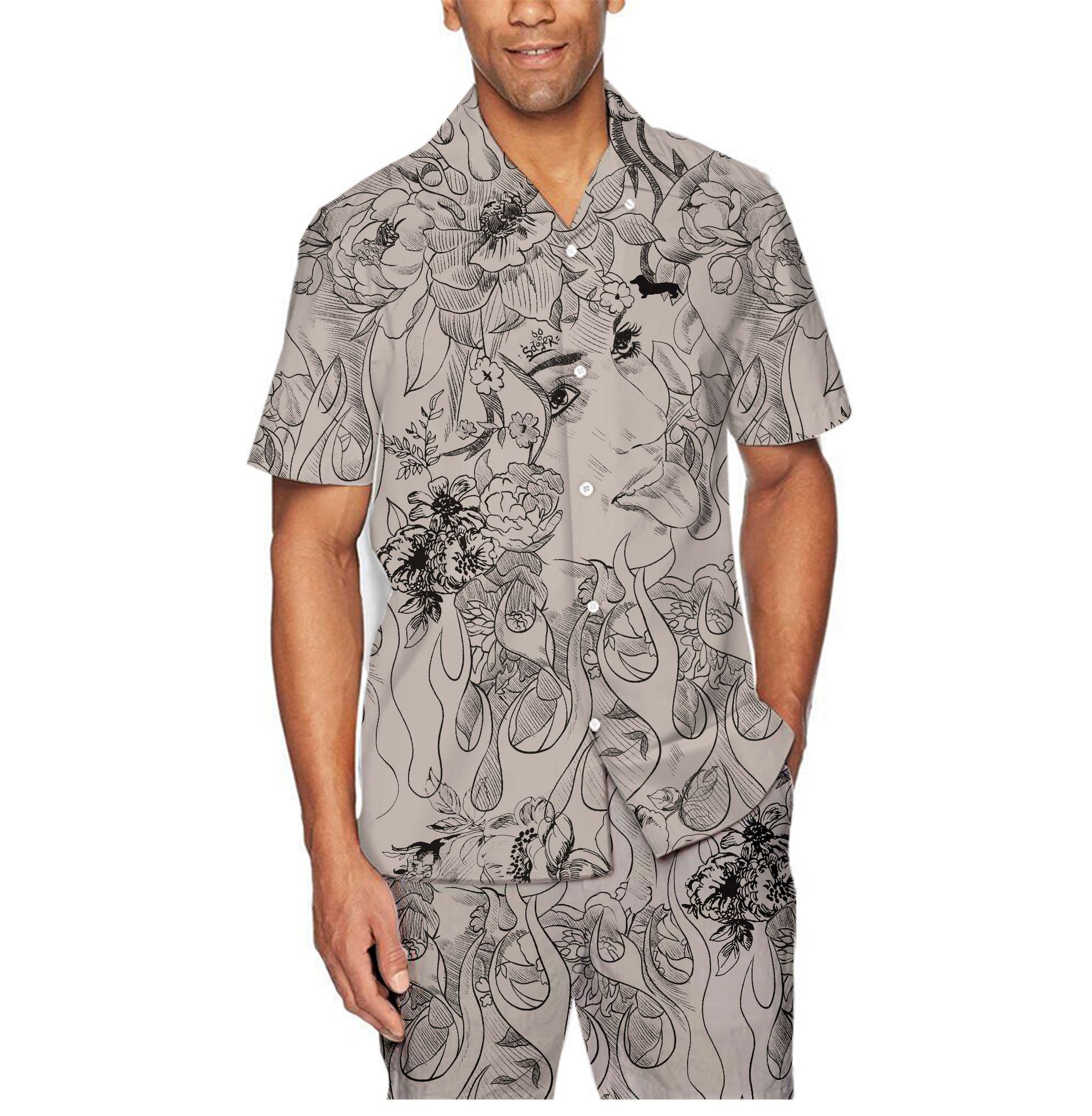 25 국경 여름 3D 인쇄 반팔 꽃 셔츠 남자 복고풍 하와이 해변 캐주얼 루즈 남성용 셔츠