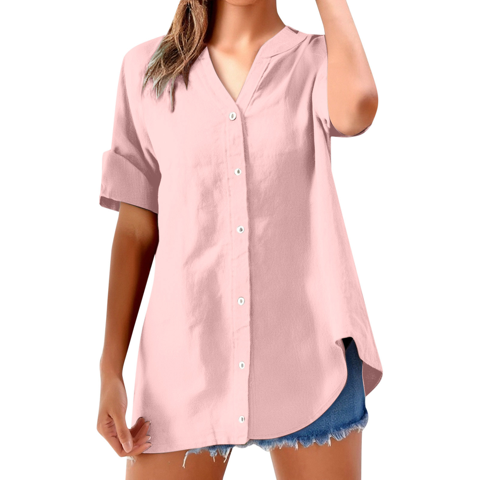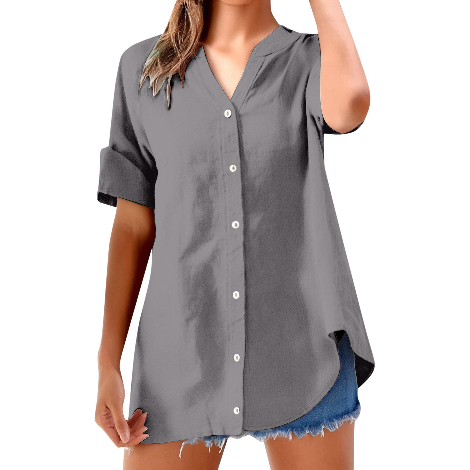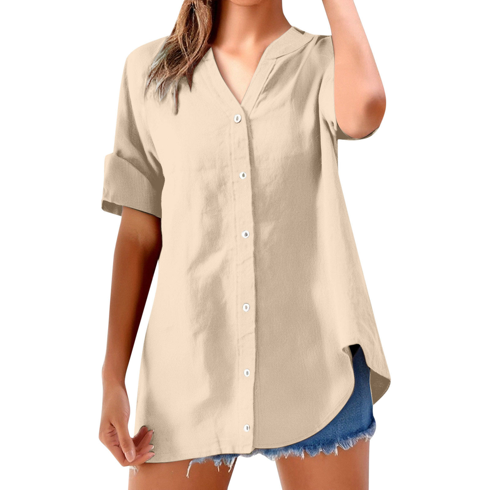 2025 아마존 국경 여성 캐주얼 솔리드 컬러 칼라 버튼 짧은 소매 셔츠 탑 여성스토어 가기