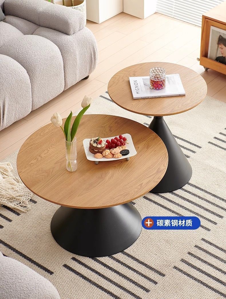 크림 스타일 인터넷 연예인 라운드 커피 테이블 가정용 유명 작은 아파트 거실 현대 솔리드 우드 홈스테이 간단한 북유럽 스타일