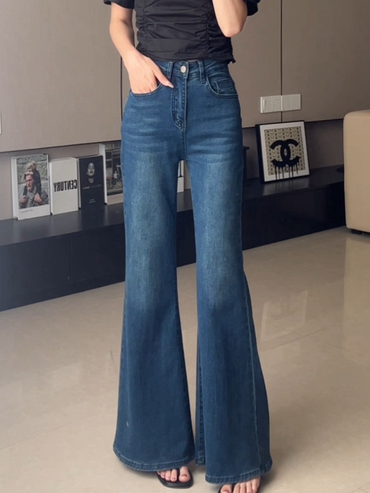 빈티지 높은 허리 마이크로 플레어 청바지 여성의 봄과 가을 2025 새로운 우아한 올 매치 슬리밍 넓은 다리 긴 바지