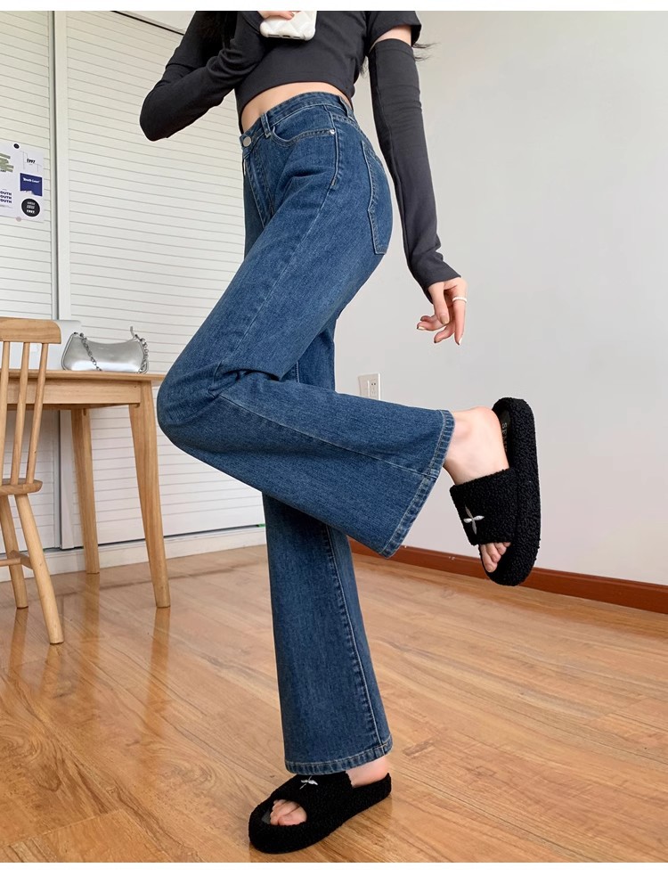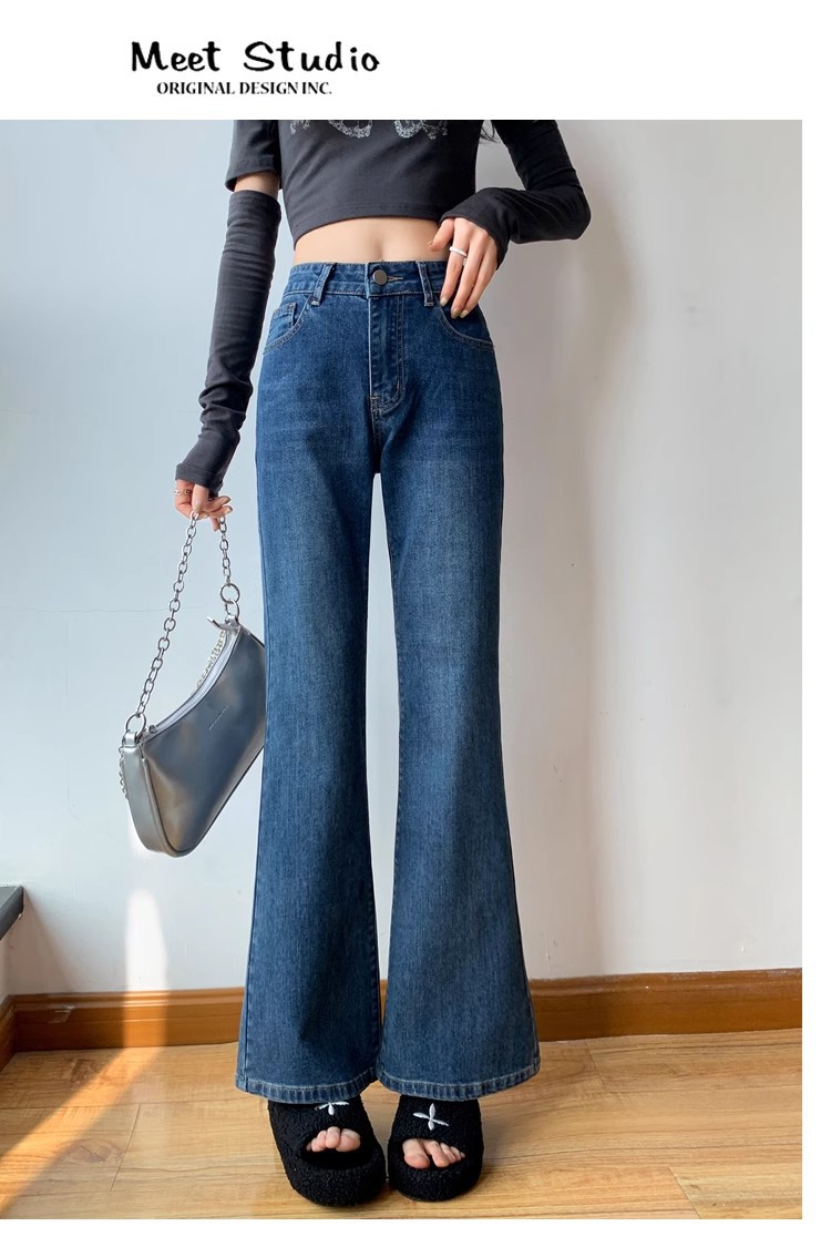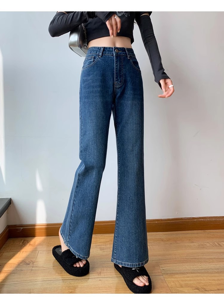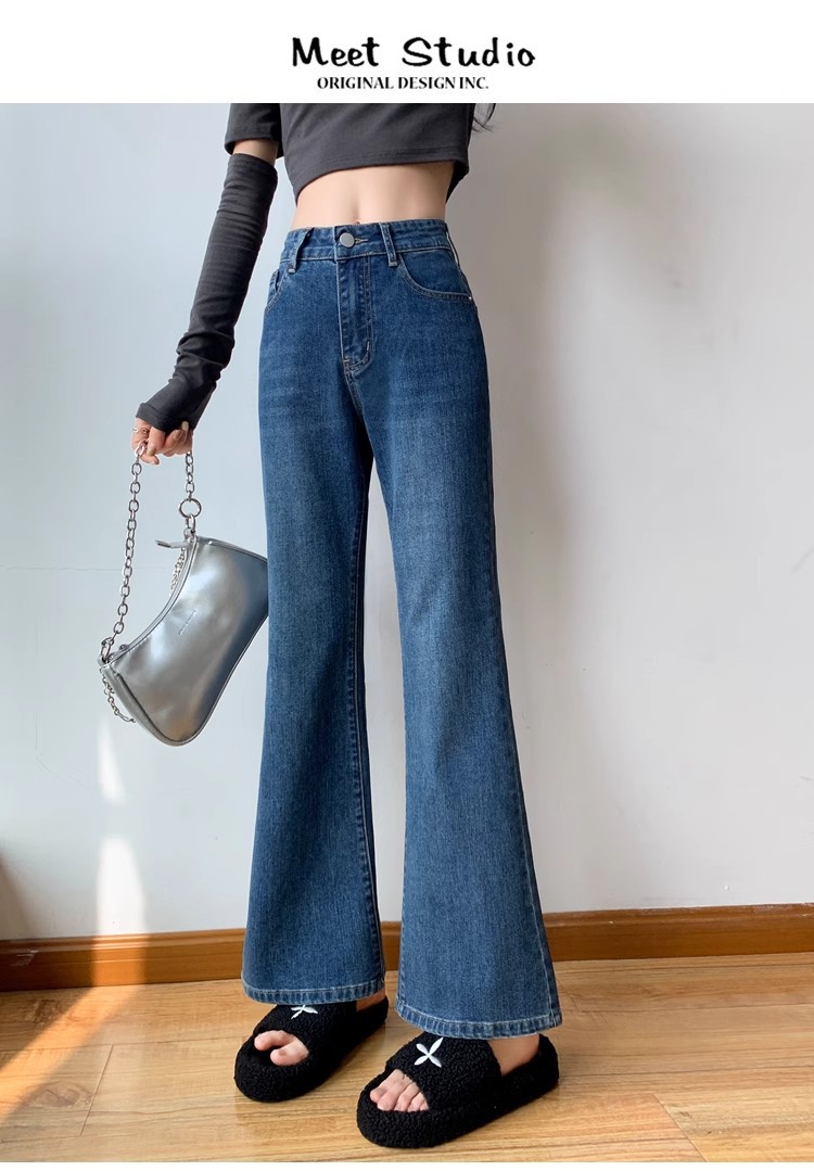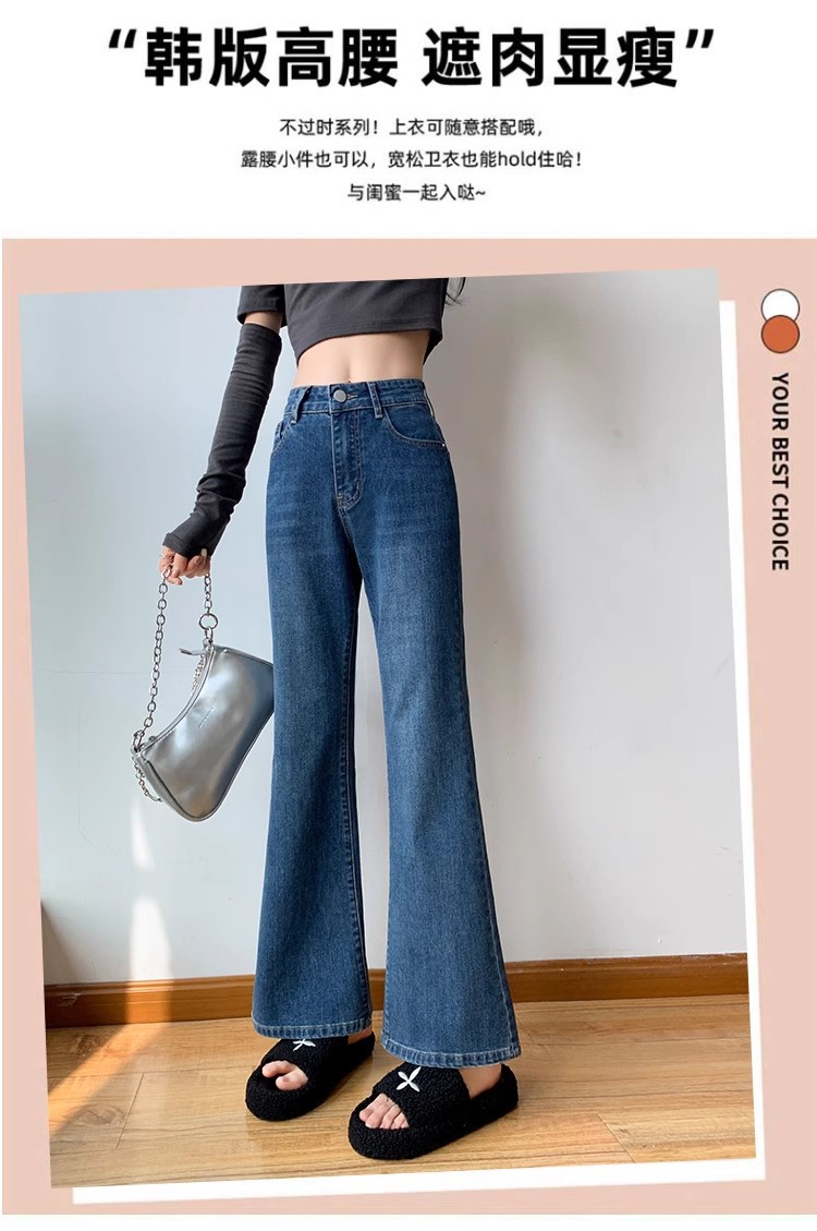 빈티지 높은 허리 마이크로 플레어 청바지 여성의 봄과 가을 2025 새로운 우아한 올 매치 슬리밍 넓은 다리 긴 바지스토어 가기