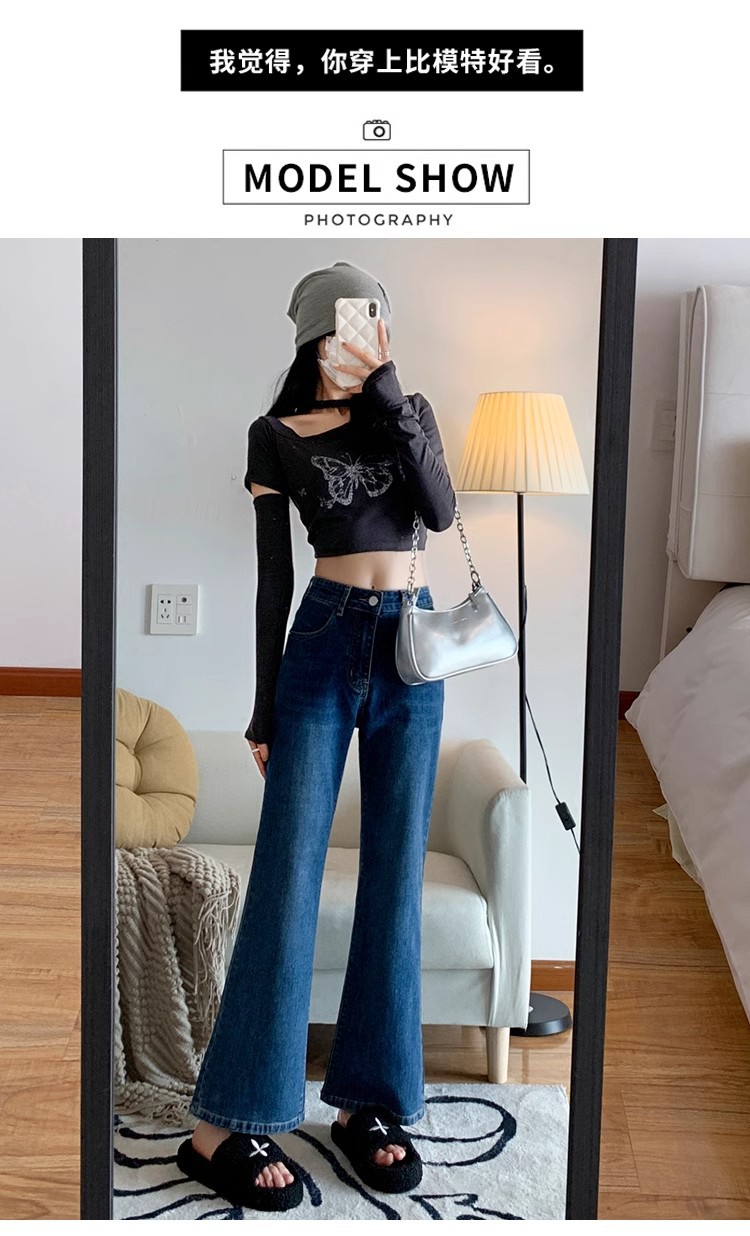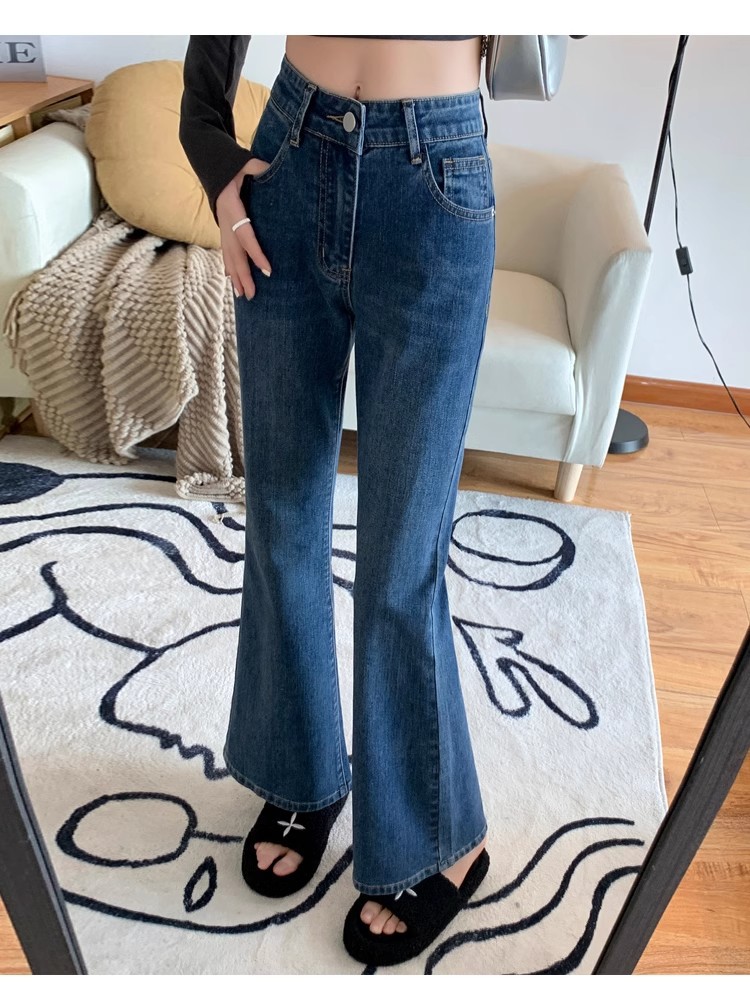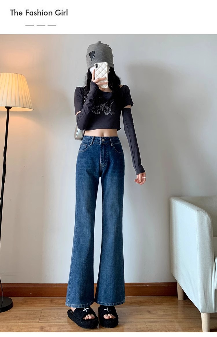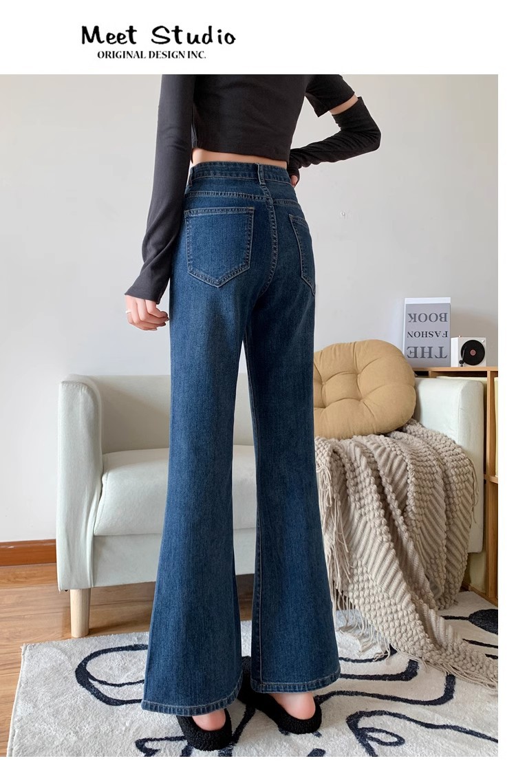 빈티지 높은 허리 마이크로 플레어 청바지 여성의 봄과 가을 2025 새로운 우아한 올 매치 슬리밍 넓은 다리 긴 바지스토어 가기