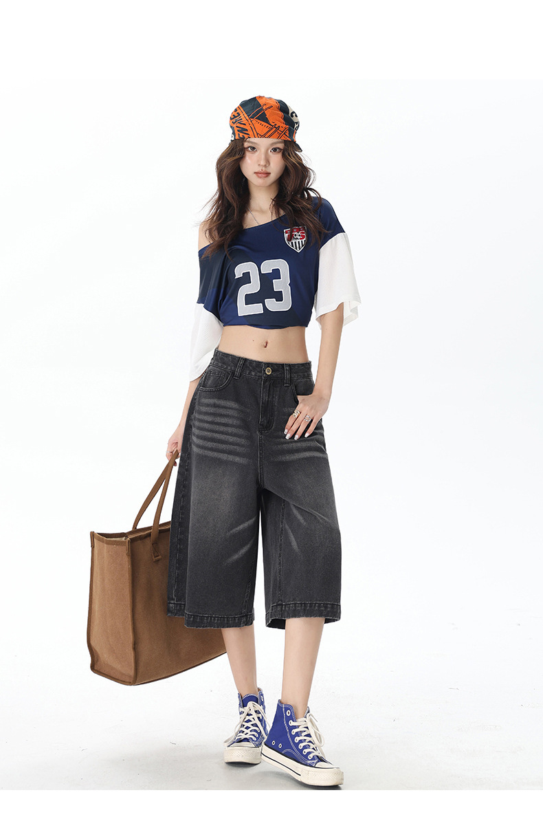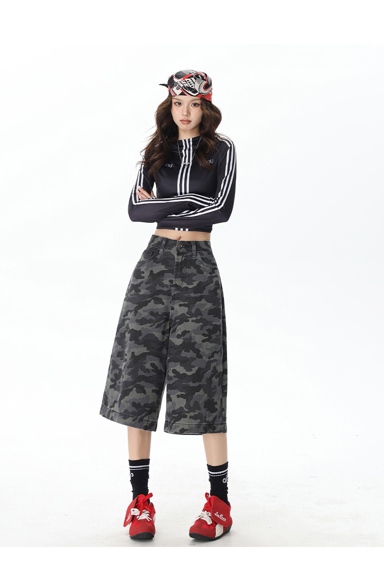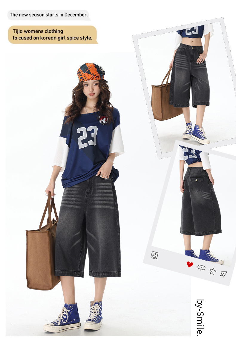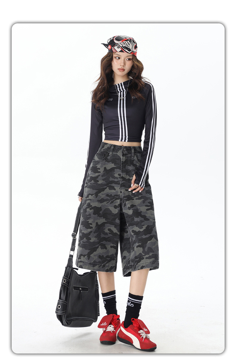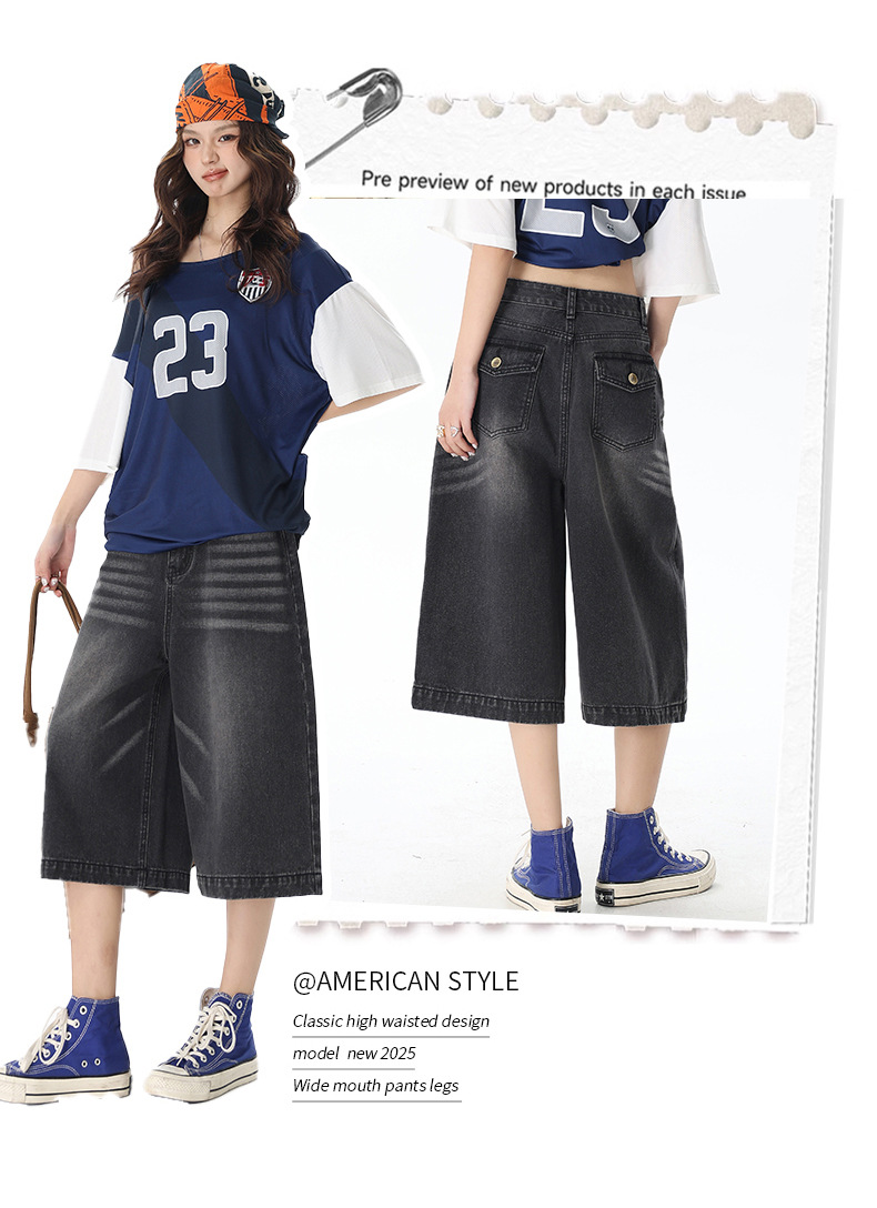 2025 년 새로운 도착 봄과 여름 여성 아메리칸 스타일 레트로 하이 웨이스트 슬리밍 루즈 반바지스토어 가기