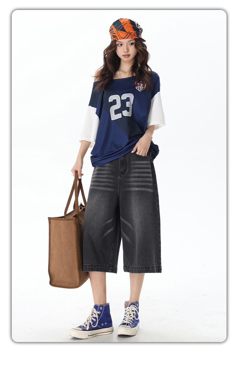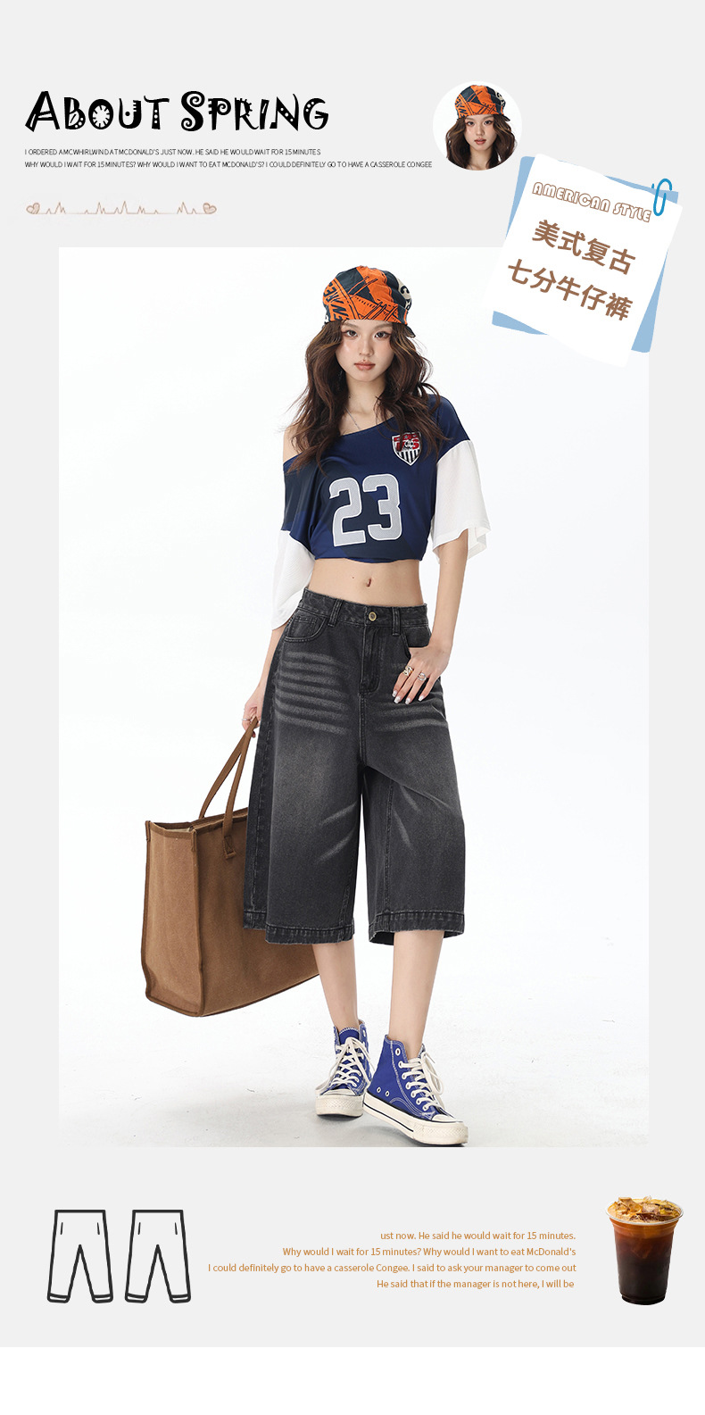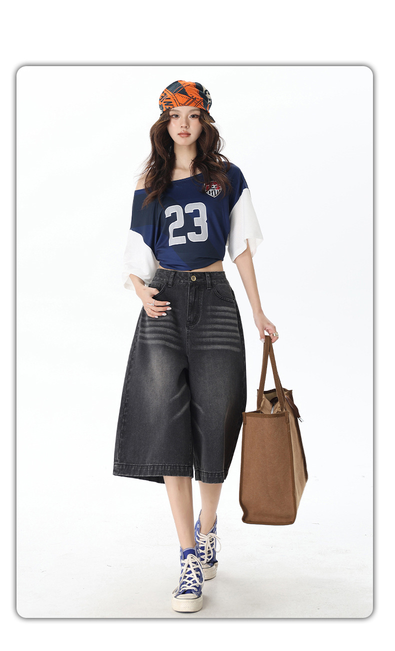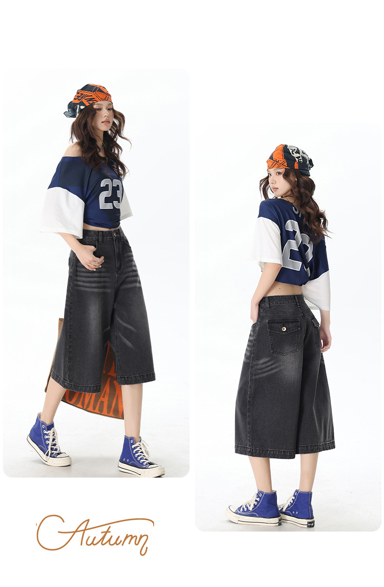 2025 년 새로운 도착 봄과 여름 여성 아메리칸 스타일 레트로 하이 웨이스트 슬리밍 루즈 반바지스토어 가기