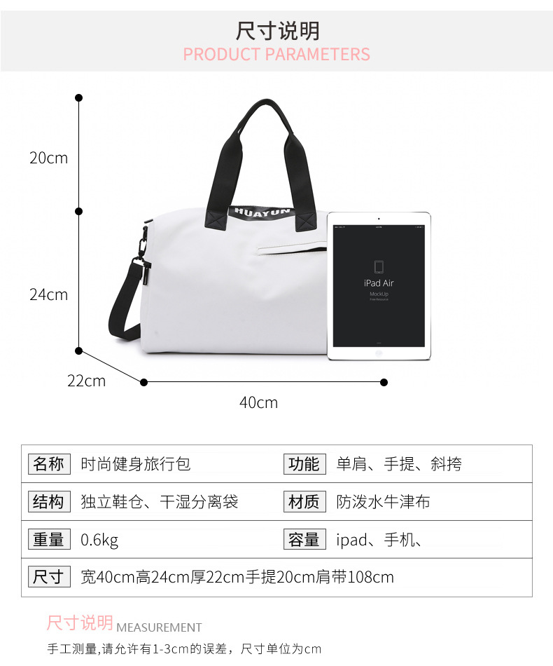 피트니스 가방 휴대용 건조하고 젖은 분리 스포츠 훈련 가방 여성 수영 보관 가방 여행 수하물 가방 단거리 여행 가방