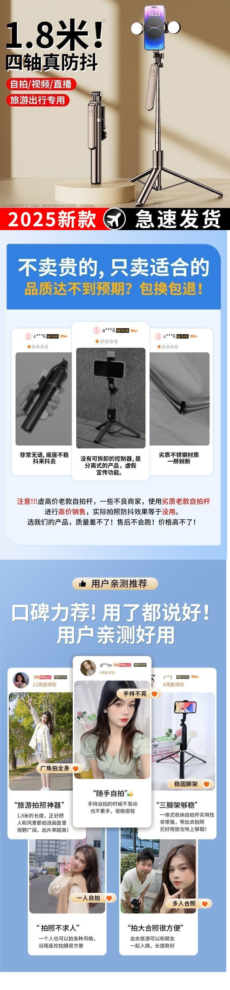 1.8 m 셀카 스틱 삼각대 블루투스 휴대 전화 라이브 트레몰로 360 도 조명 보충 휴대용 바닥 브래킷 유니버설스토어 가기