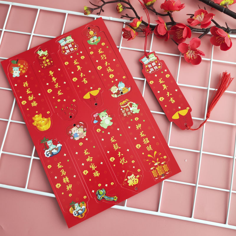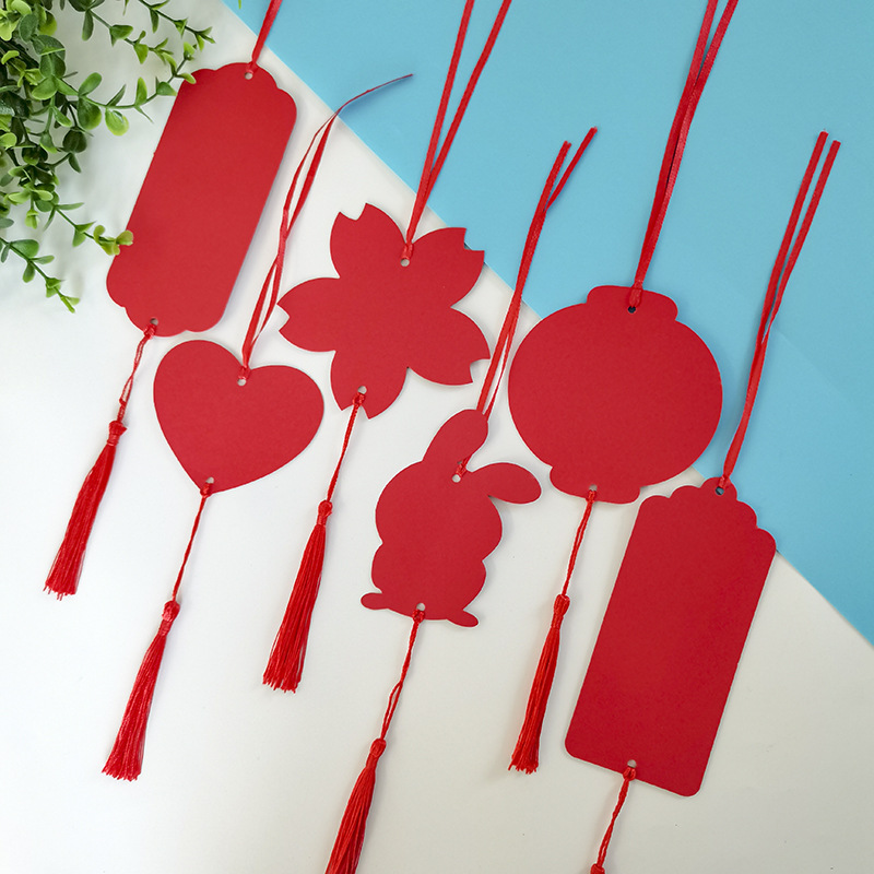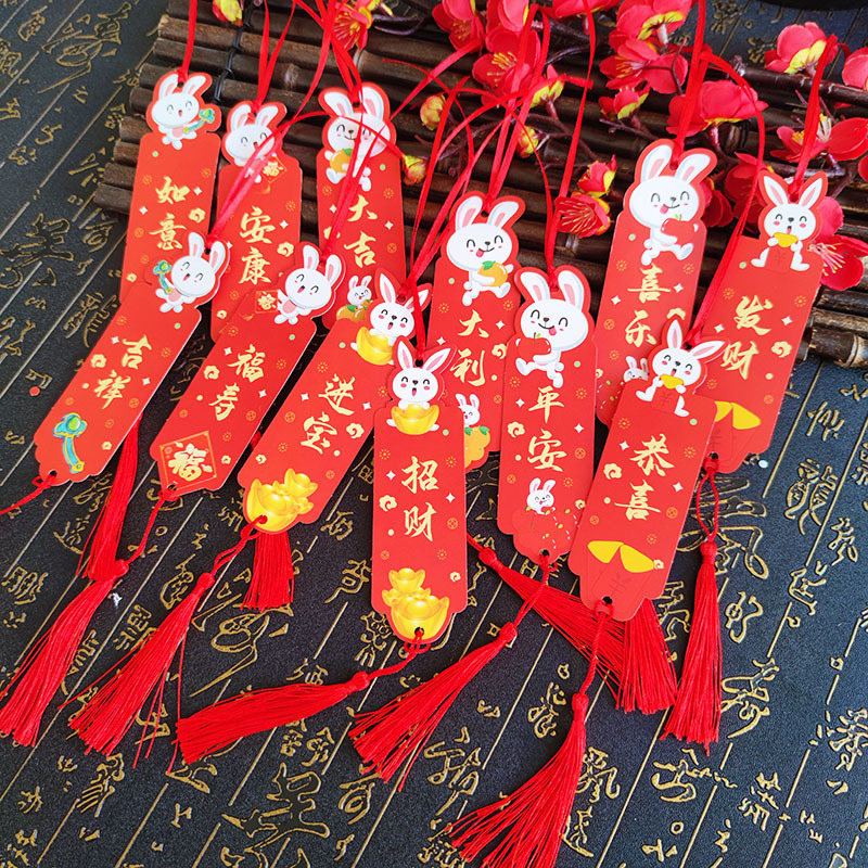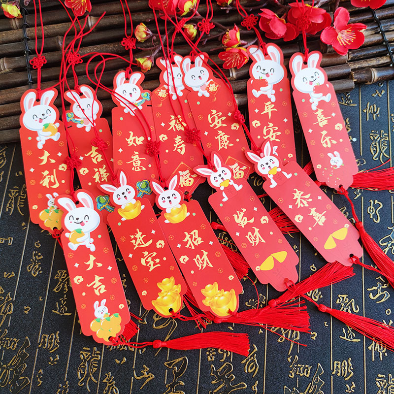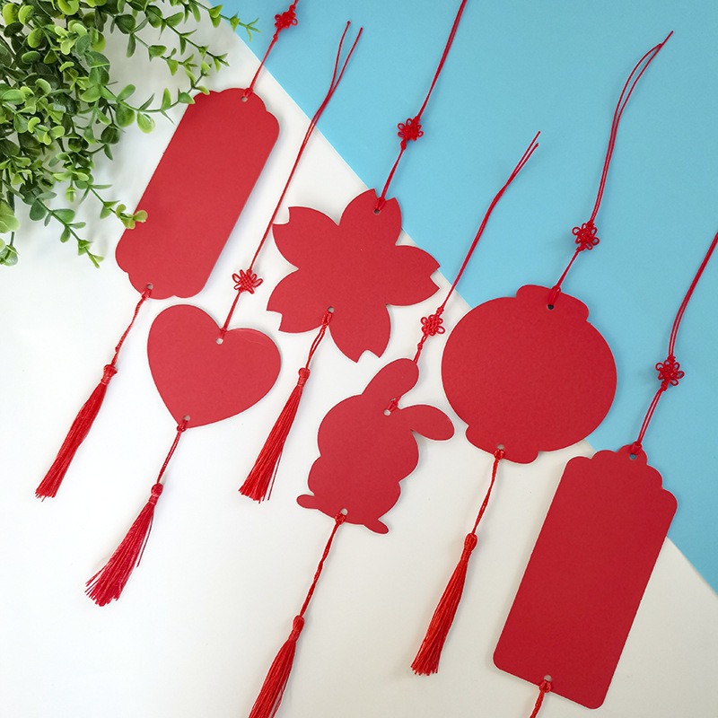 • 행복한 축복 토끼 빨간색 중국 매듭 술 30장 양면 인쇄