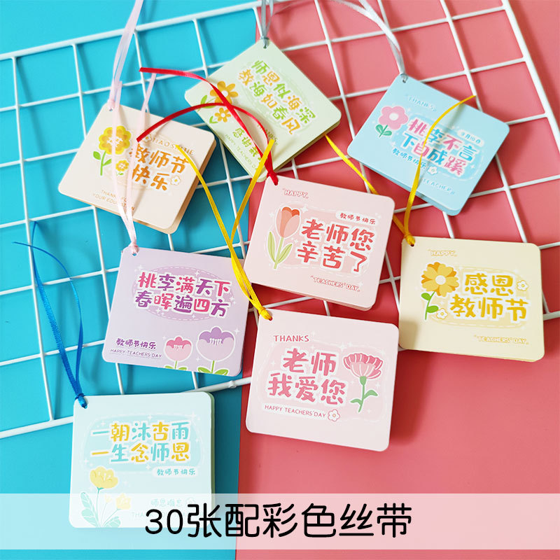 • 컬러 리본과 술이 달린 반 접힌 작은 축하 카드 30장으로 구성된 스승의 날 축하