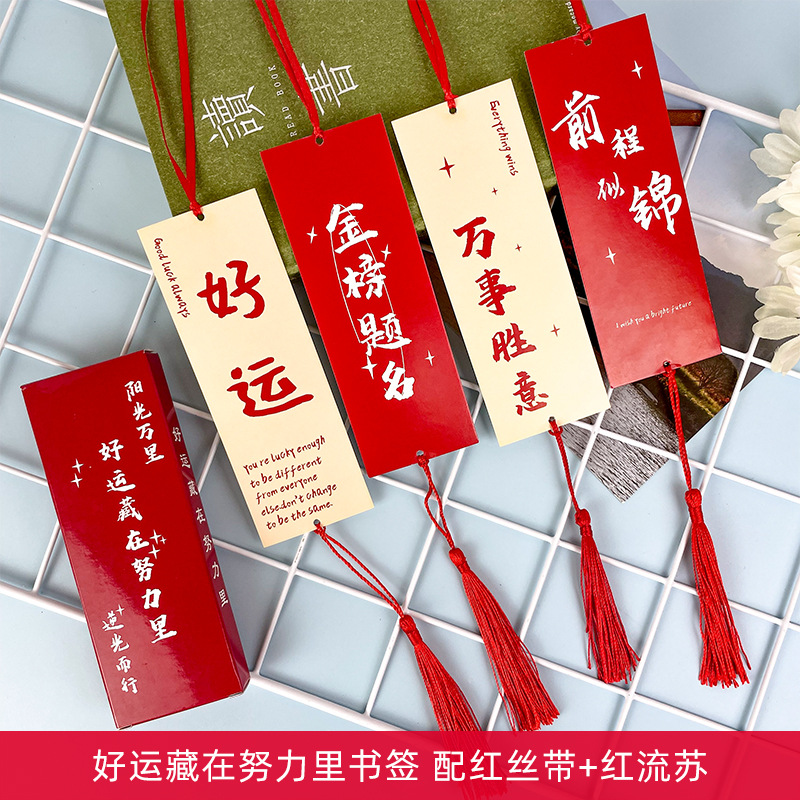 • 기쁨과 기쁨 북마크 30개 레드 실크 + 레드 수