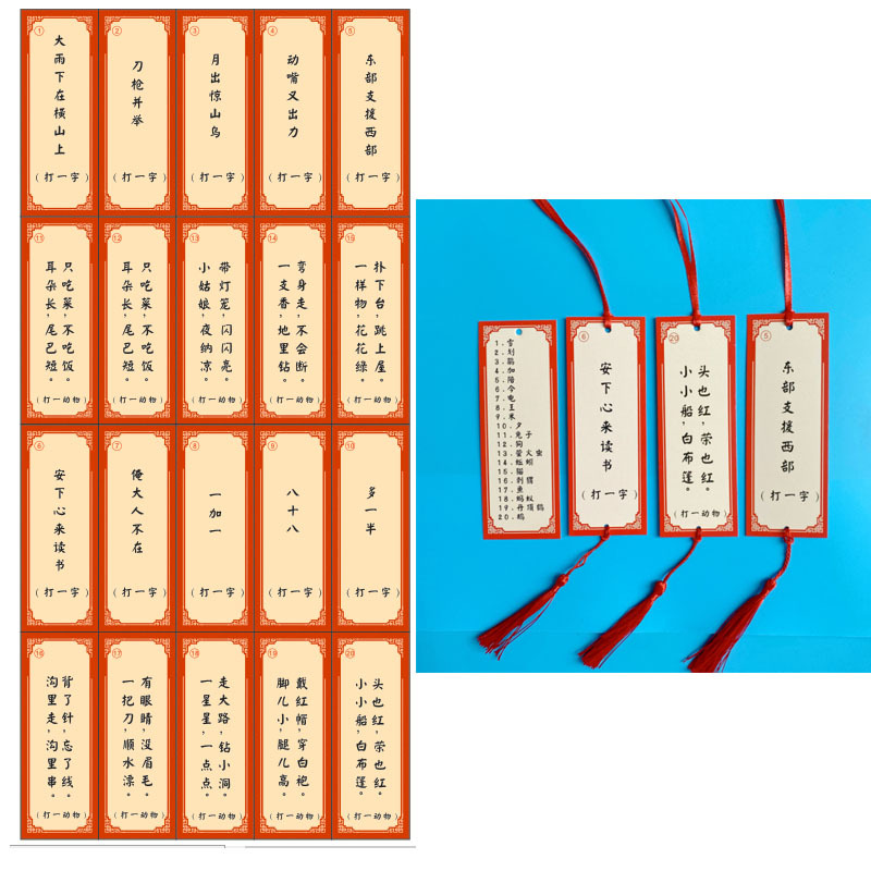 • 중국식 단어 퍼즐 카드 20장 + 컬러 리본 + 술