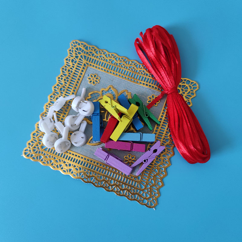 • 컬러풀한 클립 30개 + 빨간색 리본 10m개 + 후크 6개