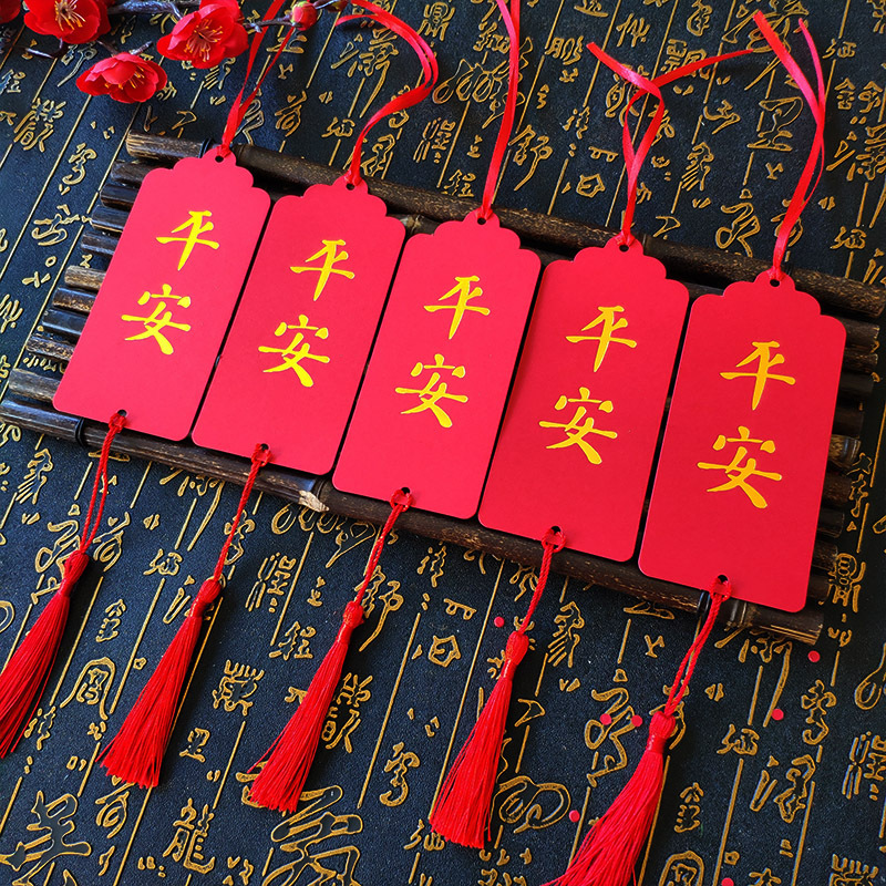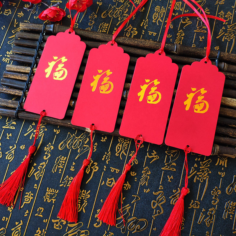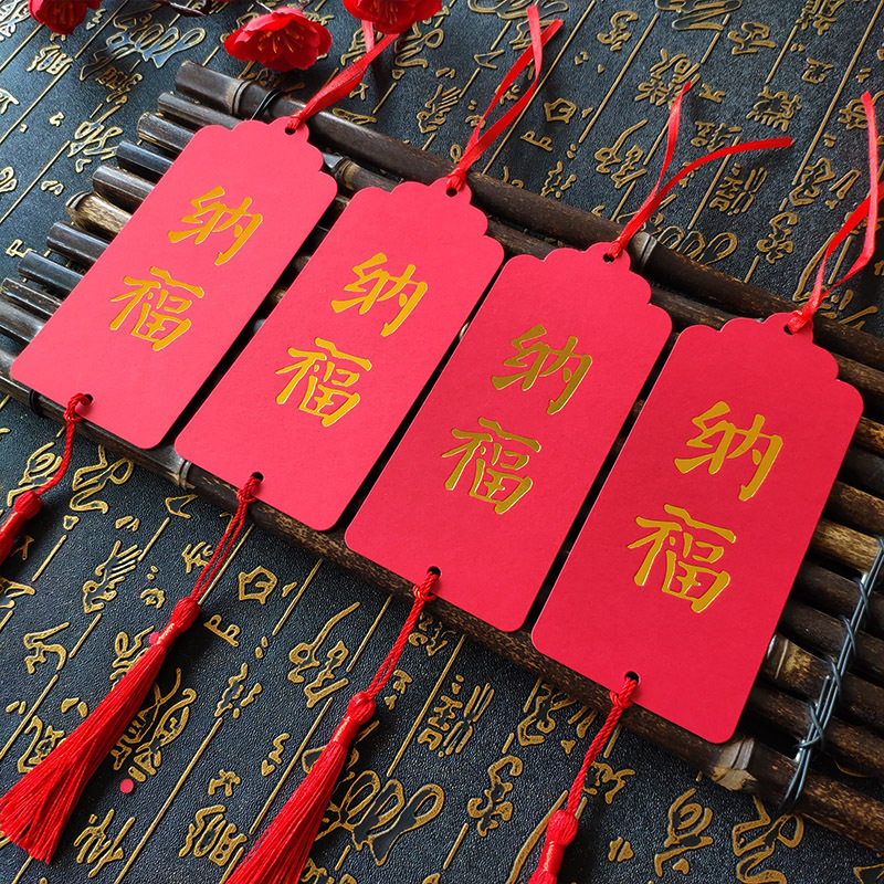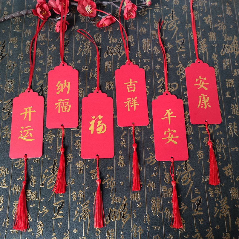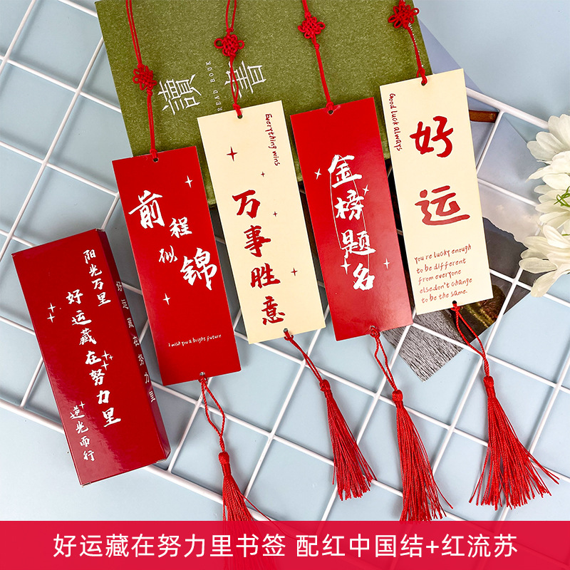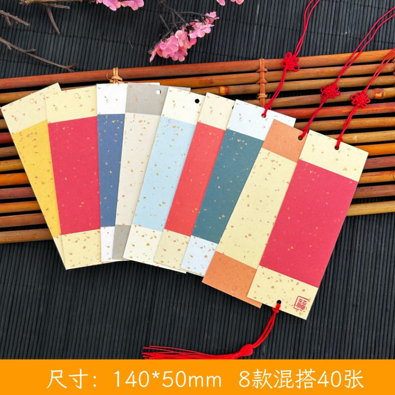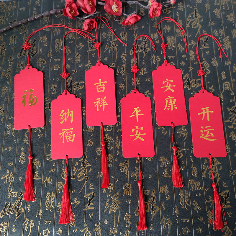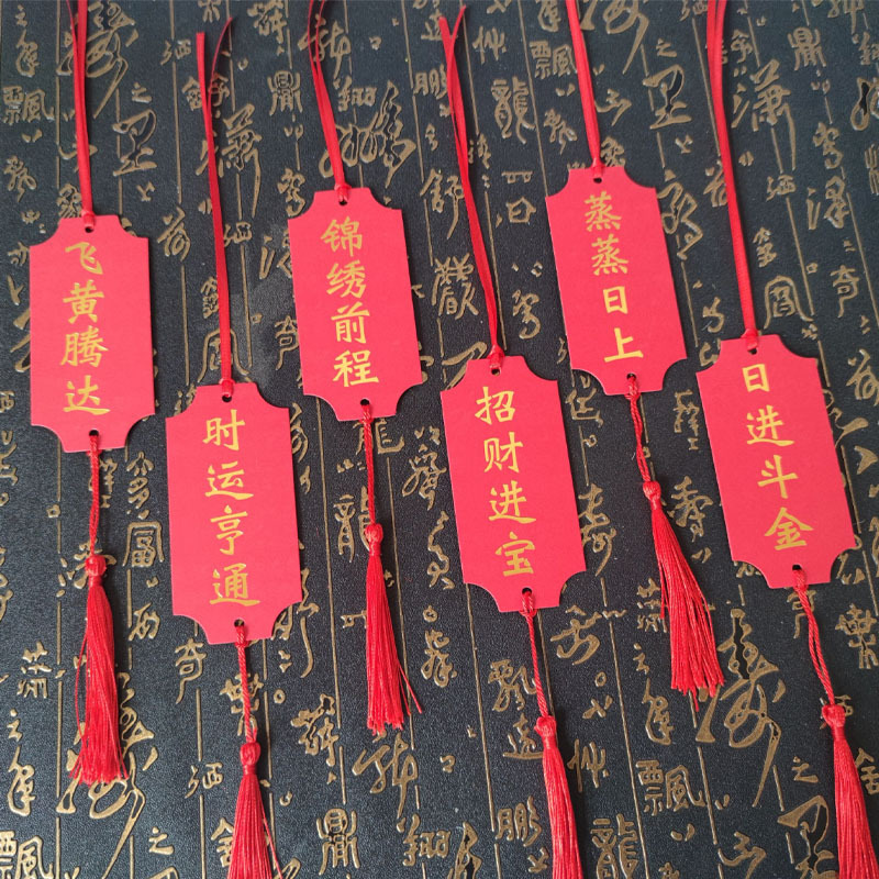 • 모조 금 책갈피 40개 + 빨간색 중국 매듭 + 술