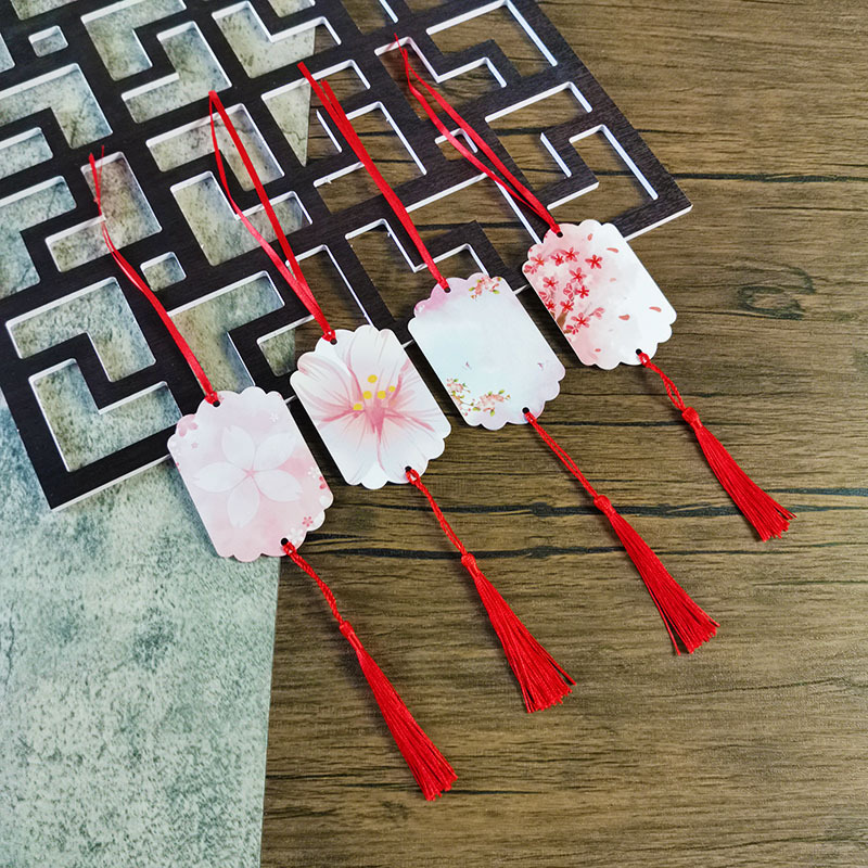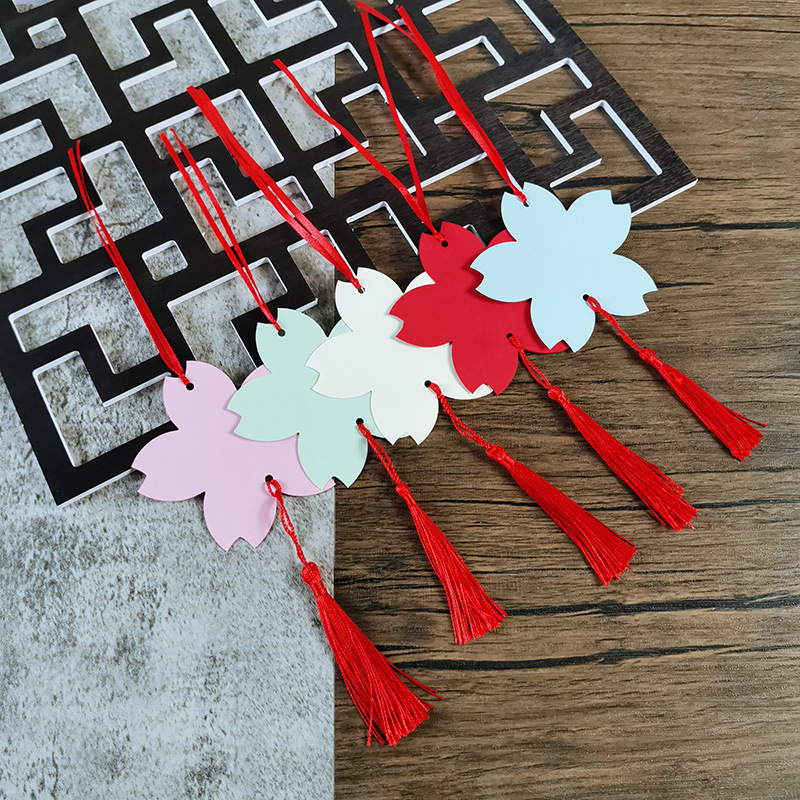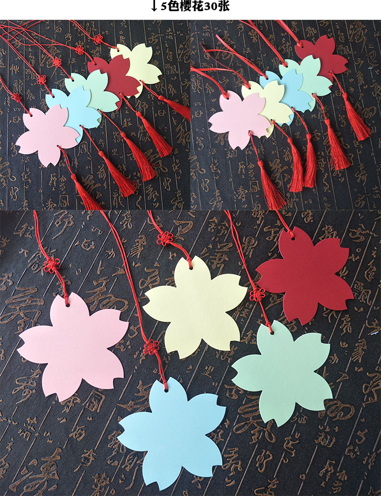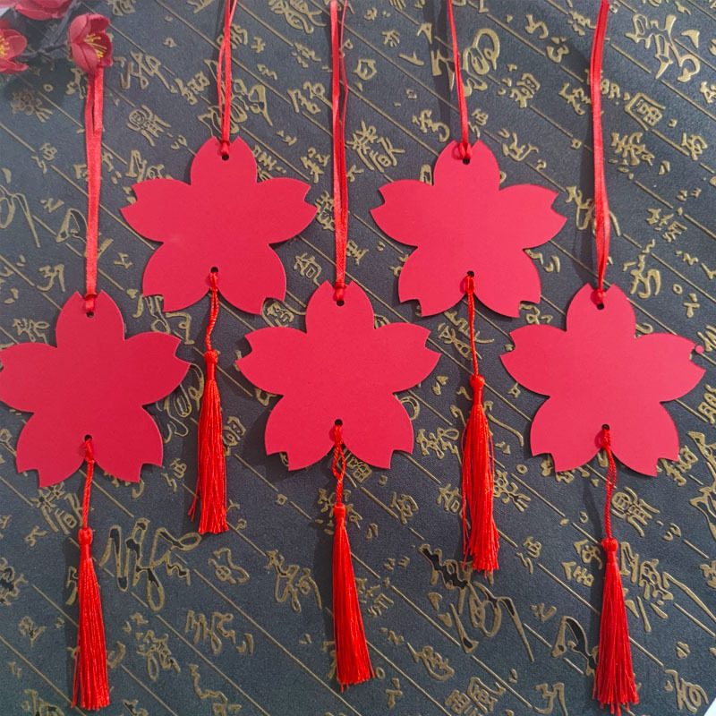 • 빨간색 술이 있는 컬러 인쇄된 벚꽃 40개 + 빨간색 리본 10m개