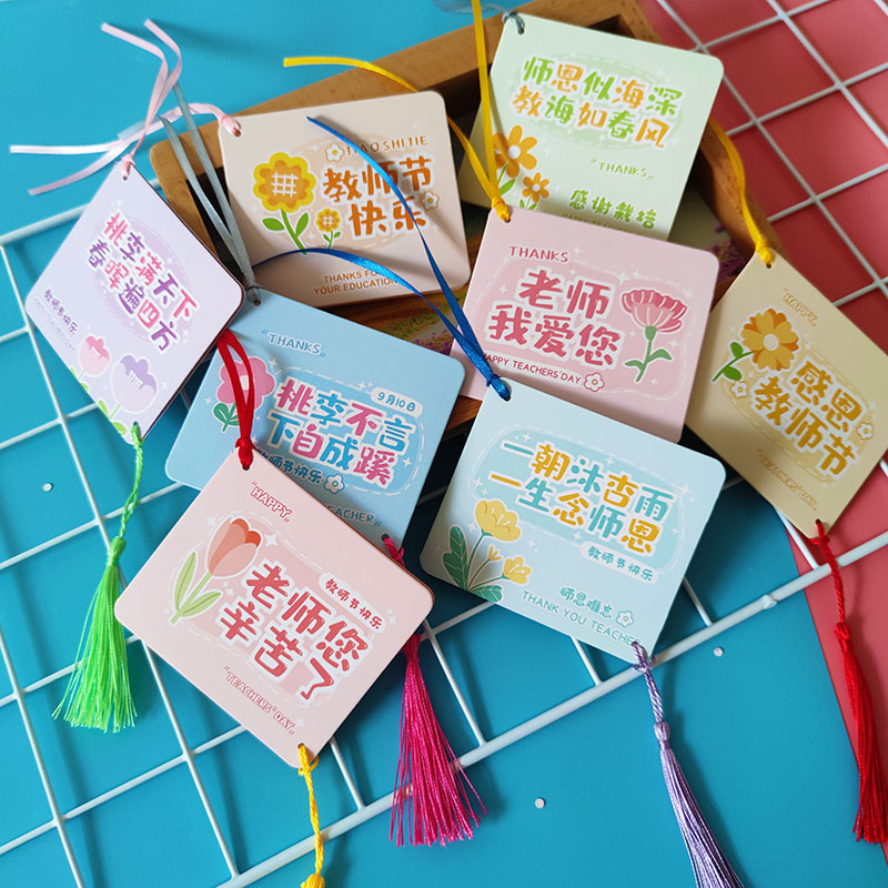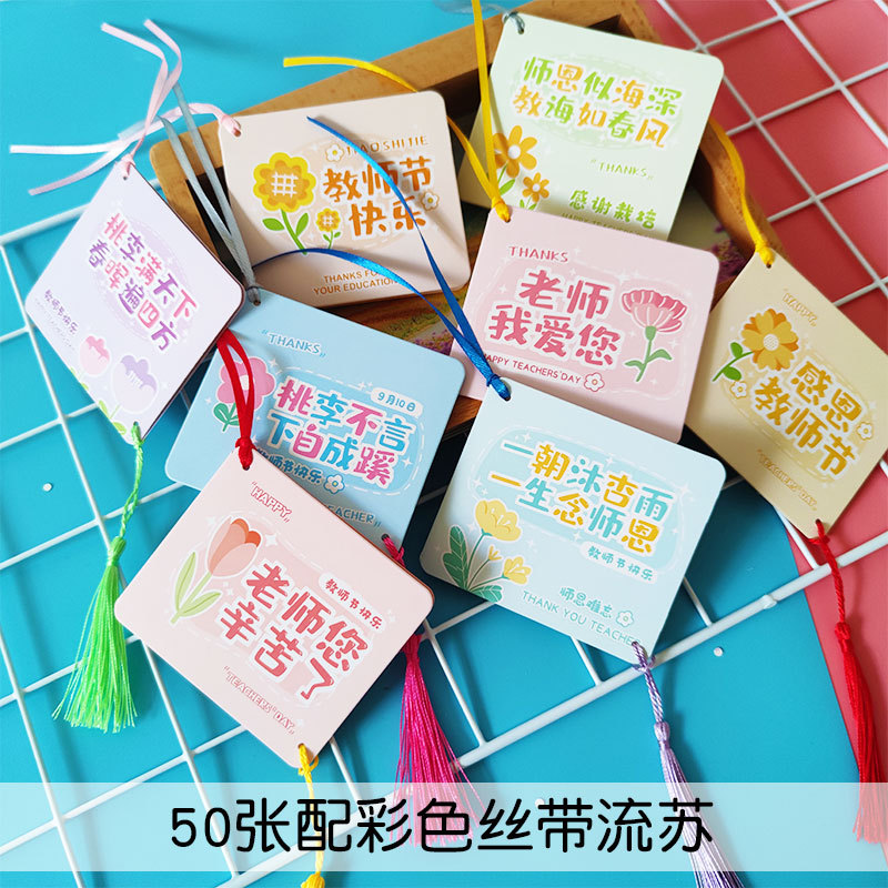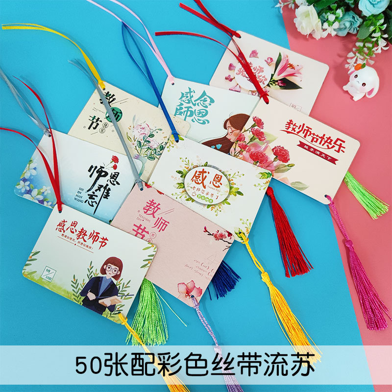 • 다채로운 리본 + 컬러 술이 달린 교사의 날 접이식 소형 축하 카드 50장