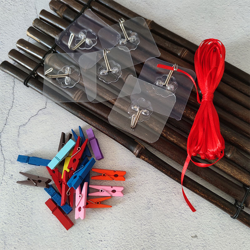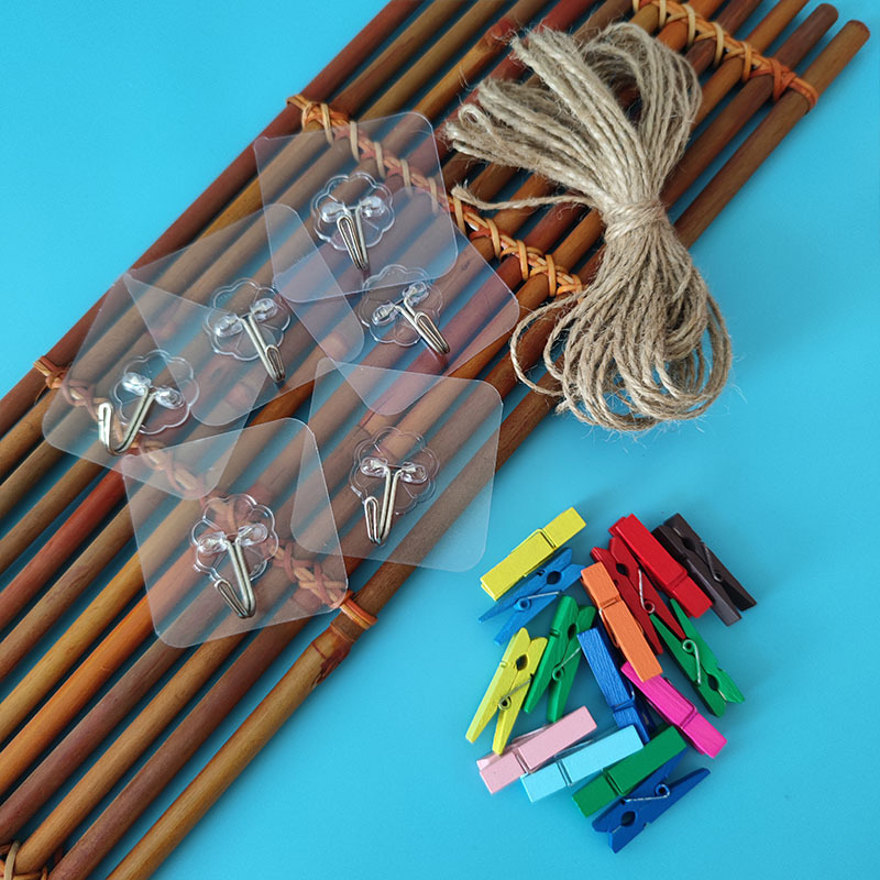 • 컬러풀한 클립 30개 + 대마줄 10m개 + 후크 6개