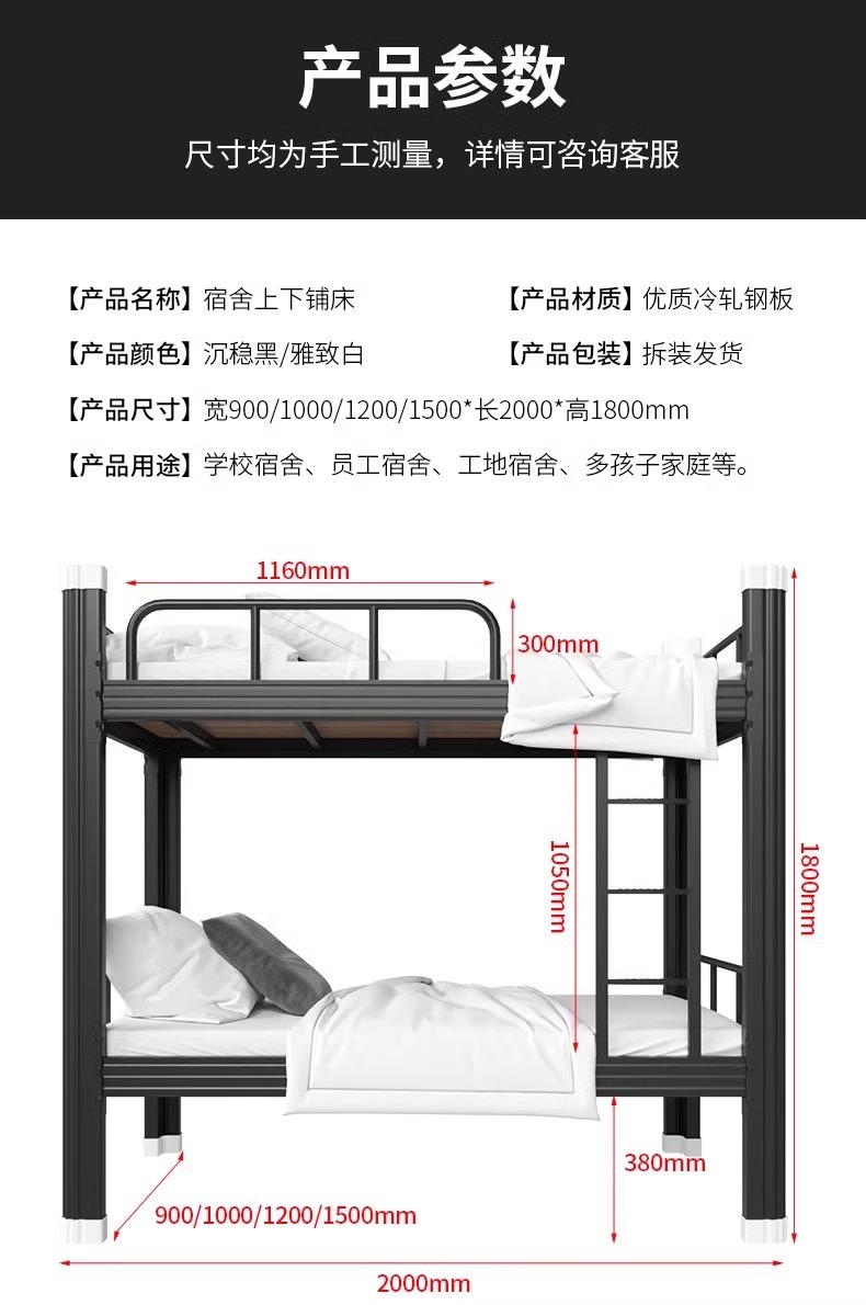 상하 이층 침대 학교 학생 직원 기숙사 철 프레임 침대 가정용 더블 스틸 침대 아파트 높고 낮은 침대