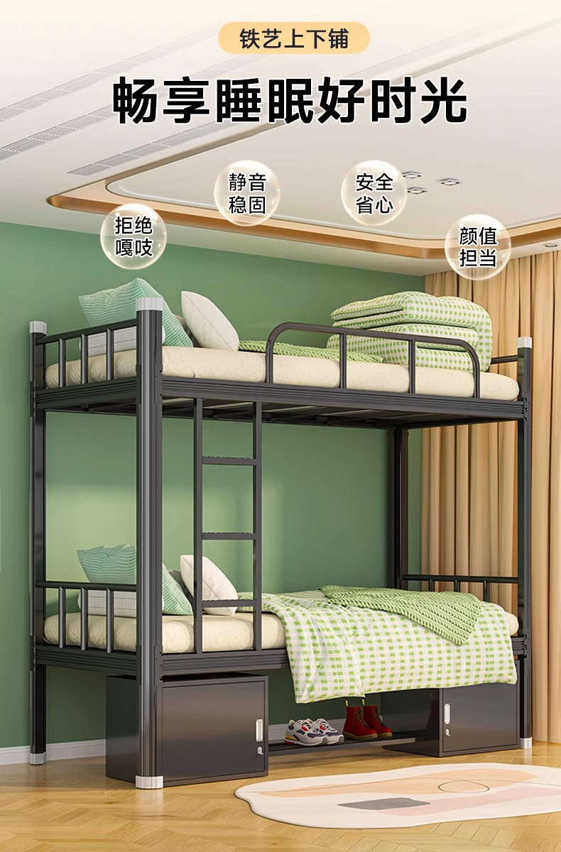 상하 이층 침대 학교 학생 직원 기숙사 철 프레임 침대 가정용 더블 스틸 침대 아파트 높고 낮은 침대스토어 가기