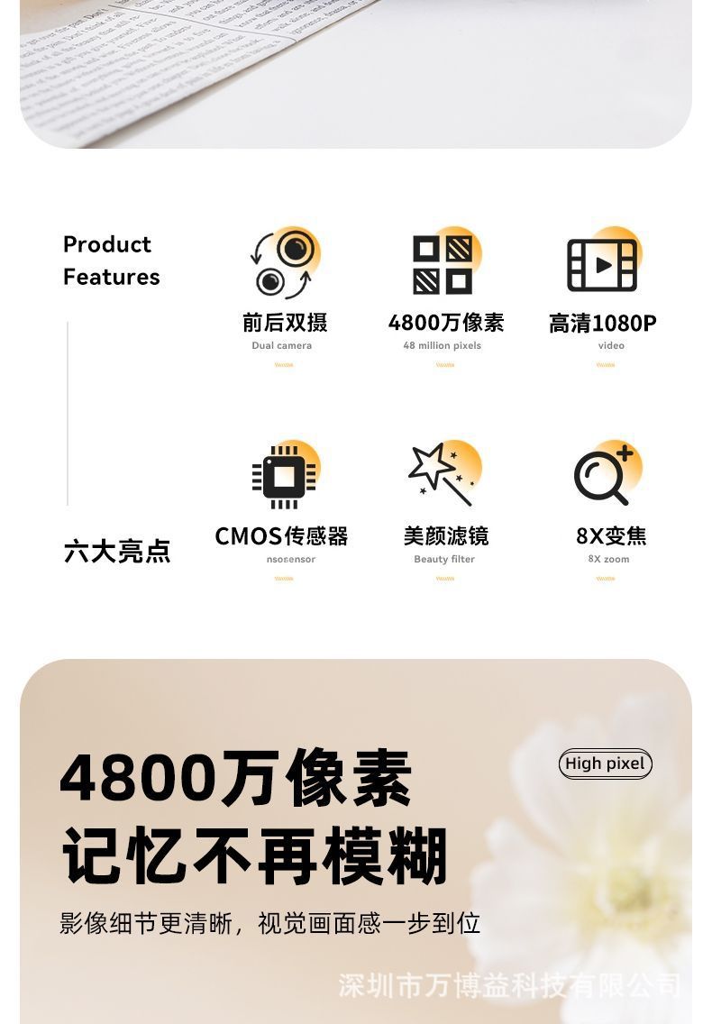 새로운 고화질 디지털 카메라 4,800 만 전면 및 후면 이중 사진 학생 캠퍼스 ccd 카드 기계 입력 어린이 사진