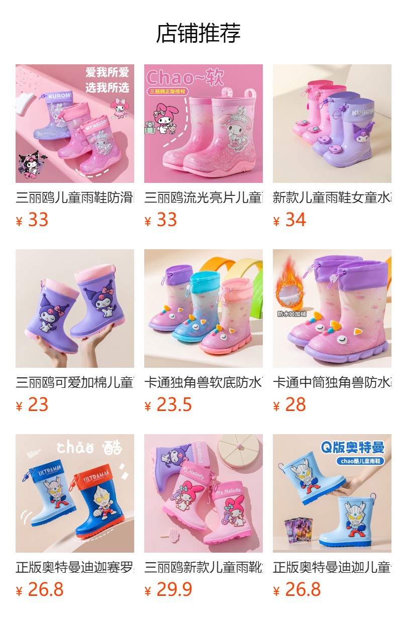 산리오 만화 어린이 비 부츠 학생 물 신발 소녀 쿨로 미 야외 미끄럼 방지 오버 슈즈 베이비 크리스탈 비 신발스토어 가기