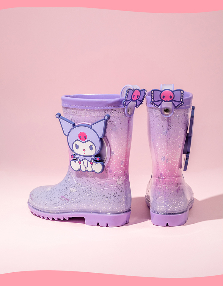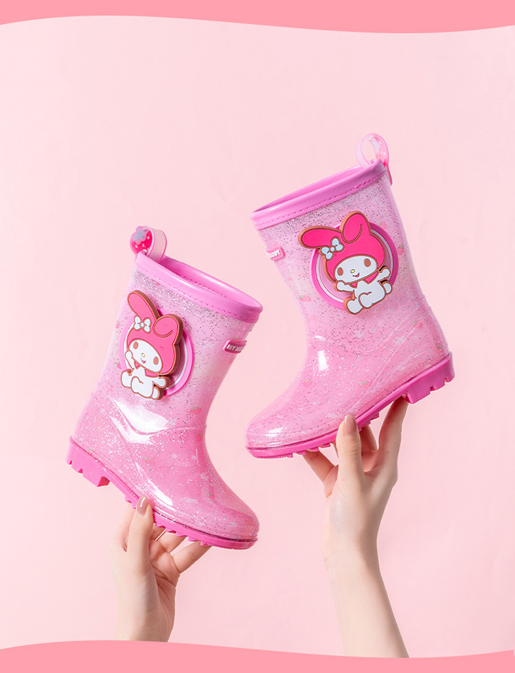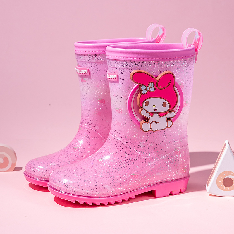 산리오 만화 어린이 비 부츠 학생 물 신발 소녀 쿨로 미 야외 미끄럼 방지 오버 슈즈 베이비 크리스탈 비 신발