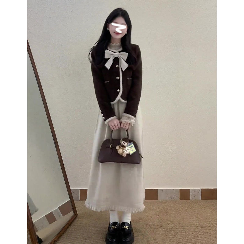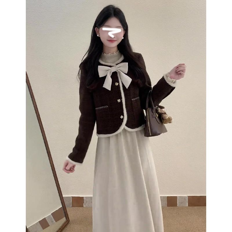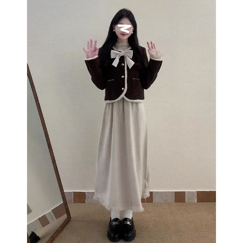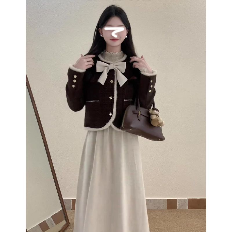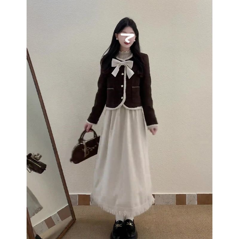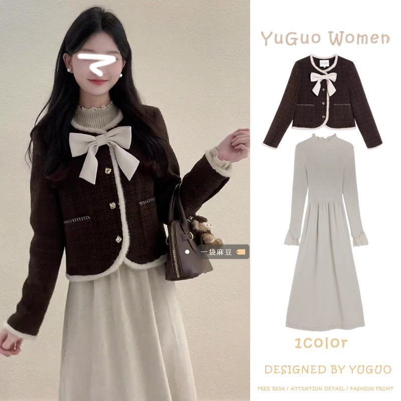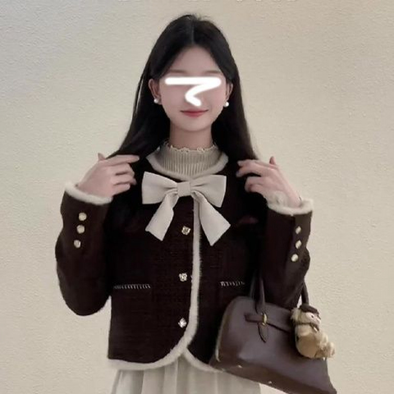 • 작은 향기로운 스타일 재킷 + 활 단일 조각/고품질 원단