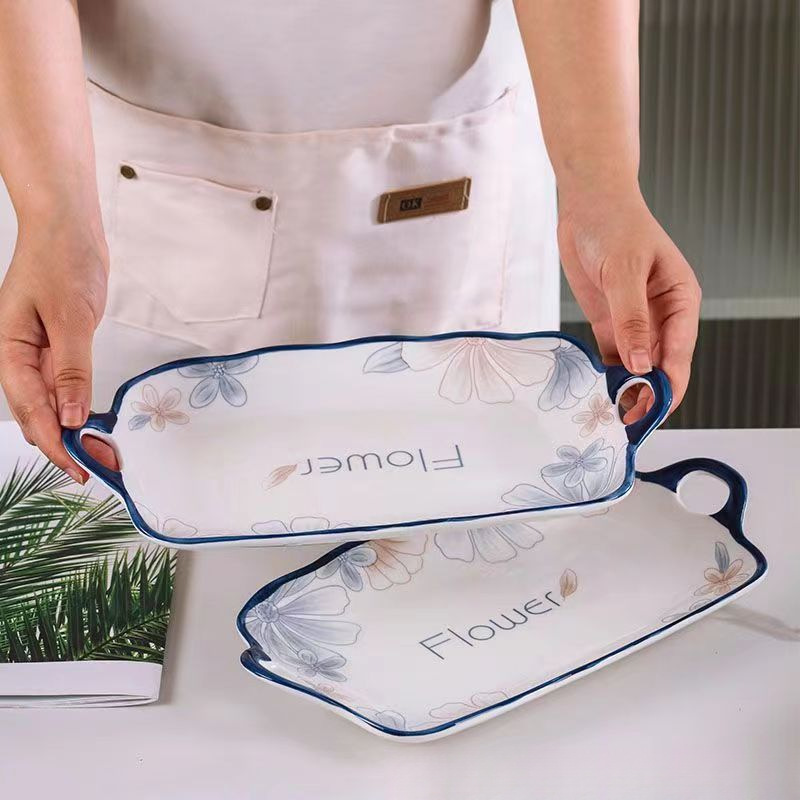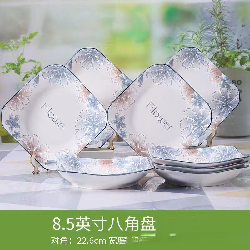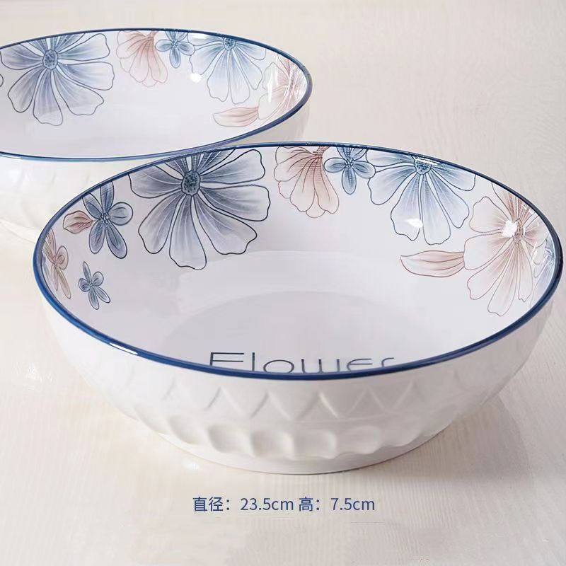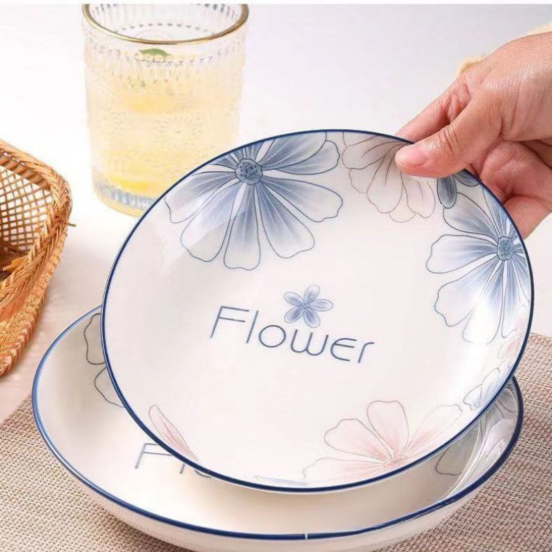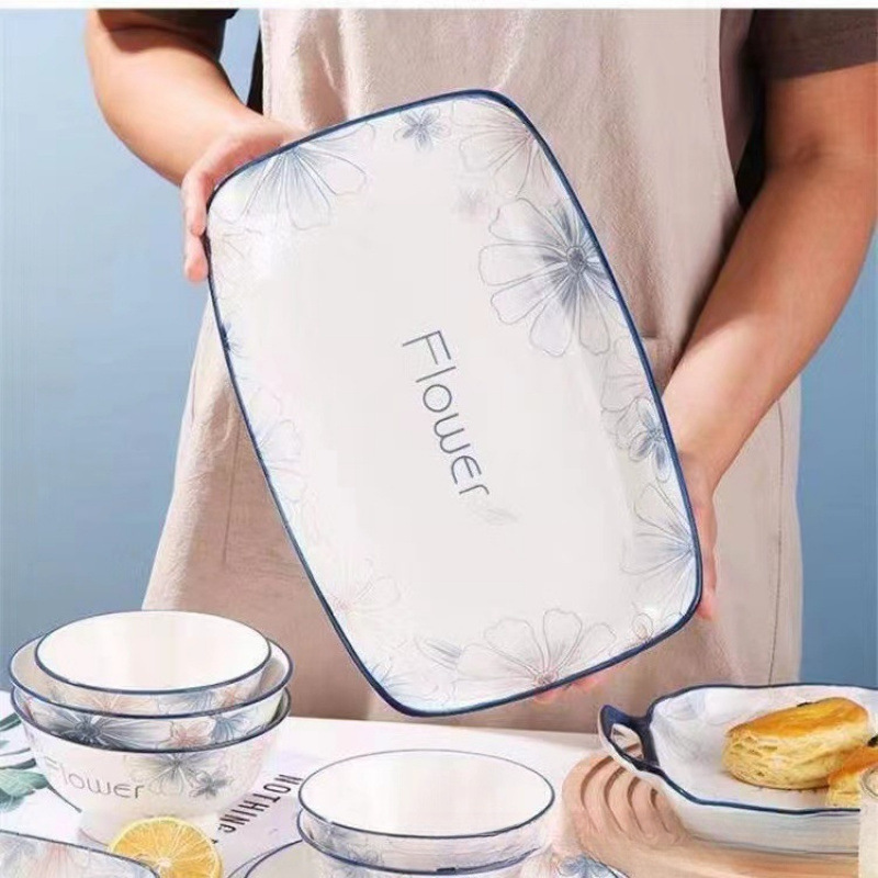 높은 색상 가치 그릇 판 조합 공장 도매 블루 다크 브라운 큰 꽃 시리즈 고온 저항 세라믹 그릇 레스토랑 홈 세대