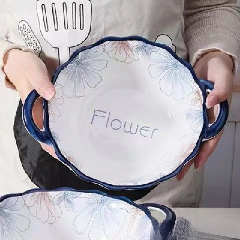 높은 색상 가치 그릇 판 조합 공장 도매 블루 다크 브라운 큰 꽃 시리즈 고온 저항 세라믹 그릇 레스토랑 홈 세대스토어 가기