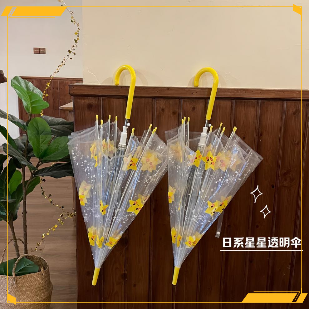 귀여운 별 접히는 어린이 우산 자동 신선한 투명한 긴 손잡이 학생 만화 두꺼운 철 다른 플라스틱스토어 가기
